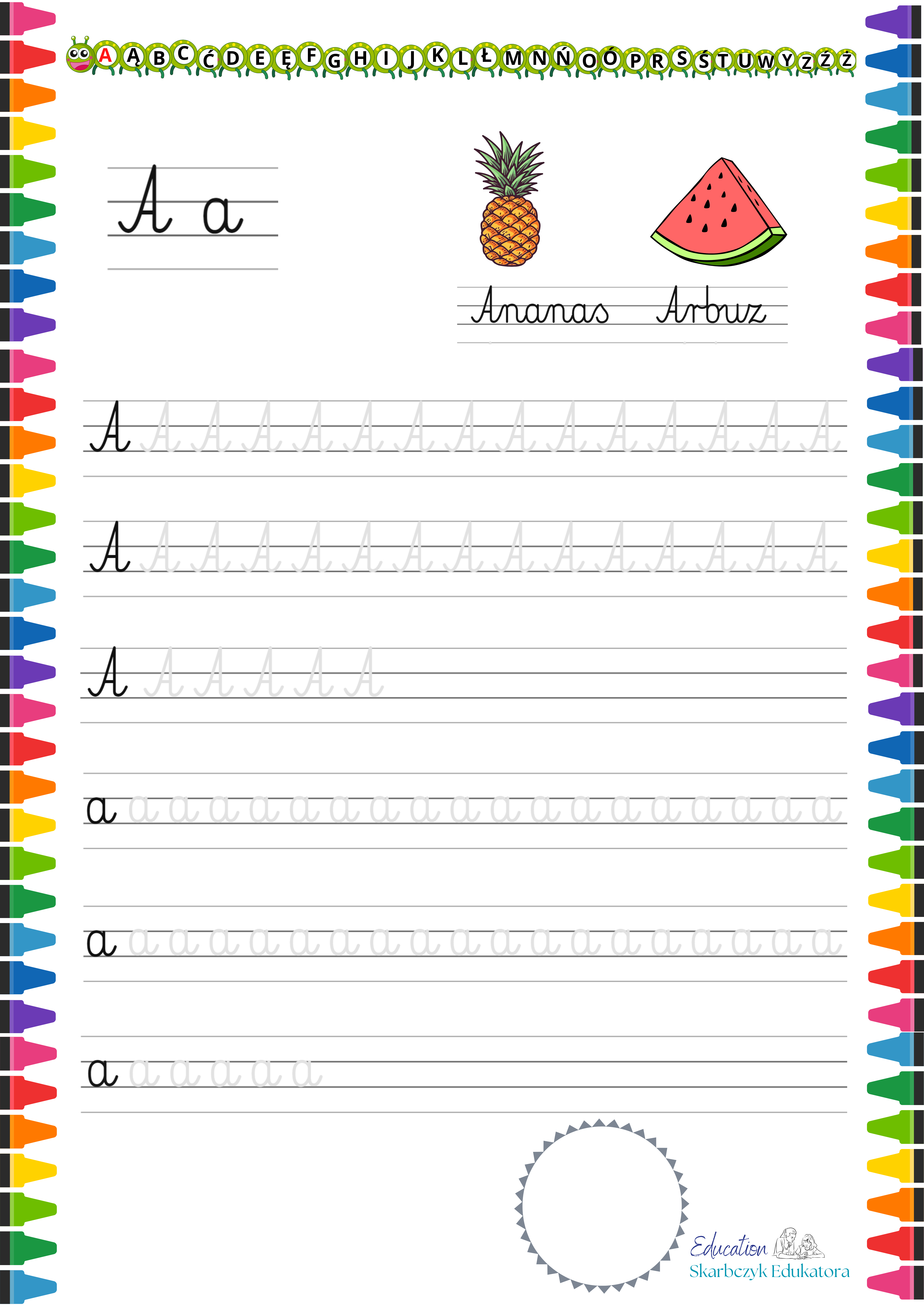 • Plik PDF to 33-stronicowy przewodnik, który pomoże Twojemu dziecku rozpocząć przygodę z nauką pisania. Każda litera na osobnej stronie.