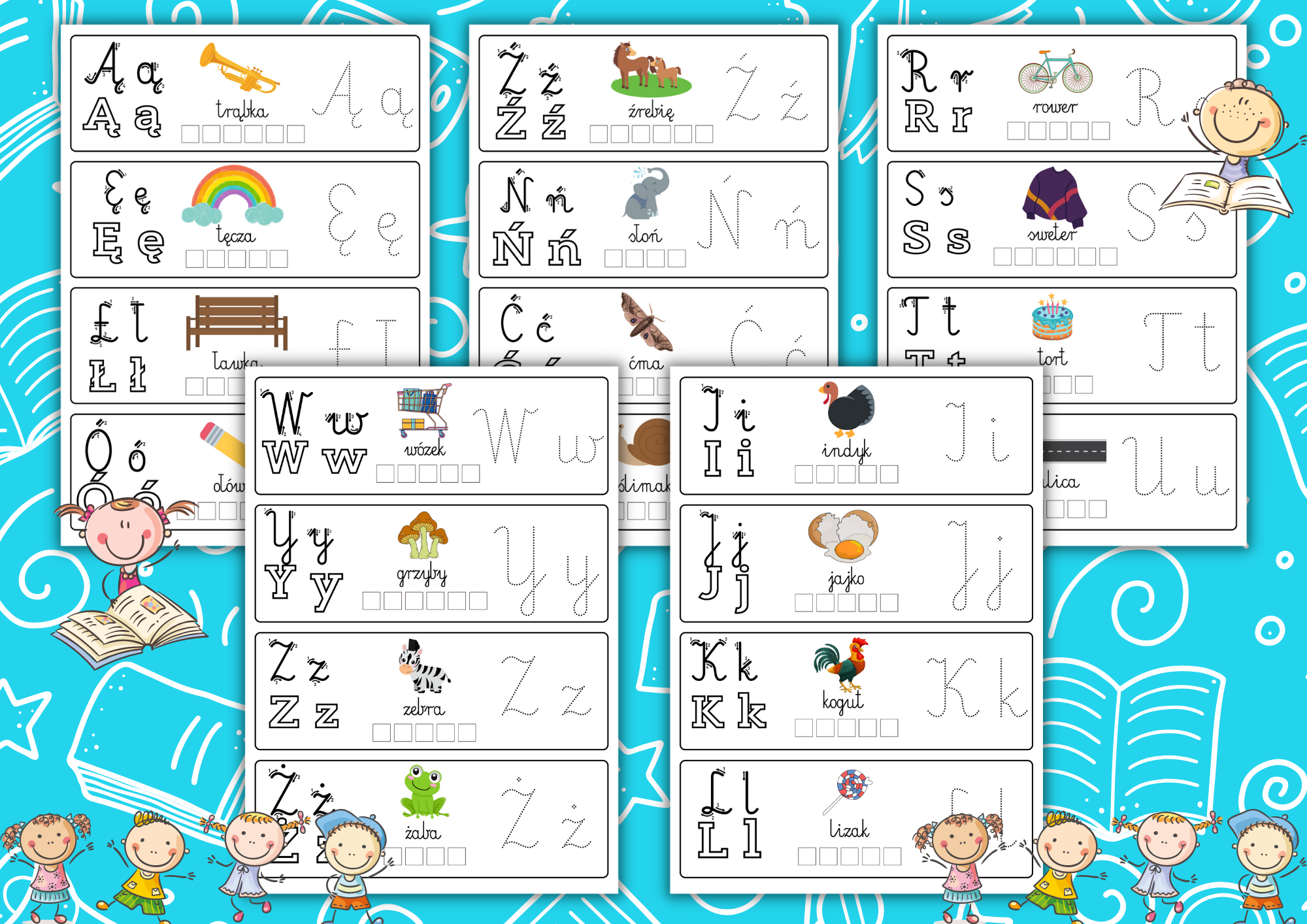 Kolorowe materiały do wydruku i nauki alfabetu dla najmłodszych. Każdą literkę uczniowie mogą pokolorować, napisać słowo oraz poprawić literkę po śladzie. Niedługo pojawi się więcej materiałów na temat alfabetu. Zestaw zawiera wszystkie litery polskiego alfabetu. W razie pytań proszę o kontakt.