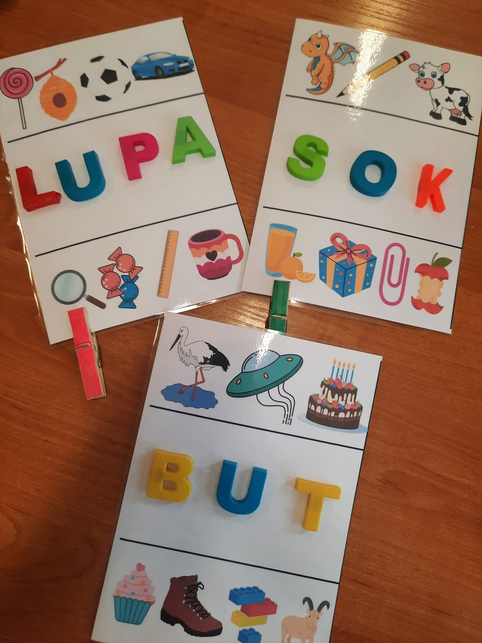 To idealna zabawa pomocna w nauce czytania i pisania, oparta na łatwych 3 i 4-literowych wyrazach.
