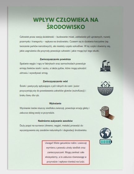 - Zanieczyszczenia, wylesianie, zmiany klimatu – w przystępnej, zrozumiałej formie.