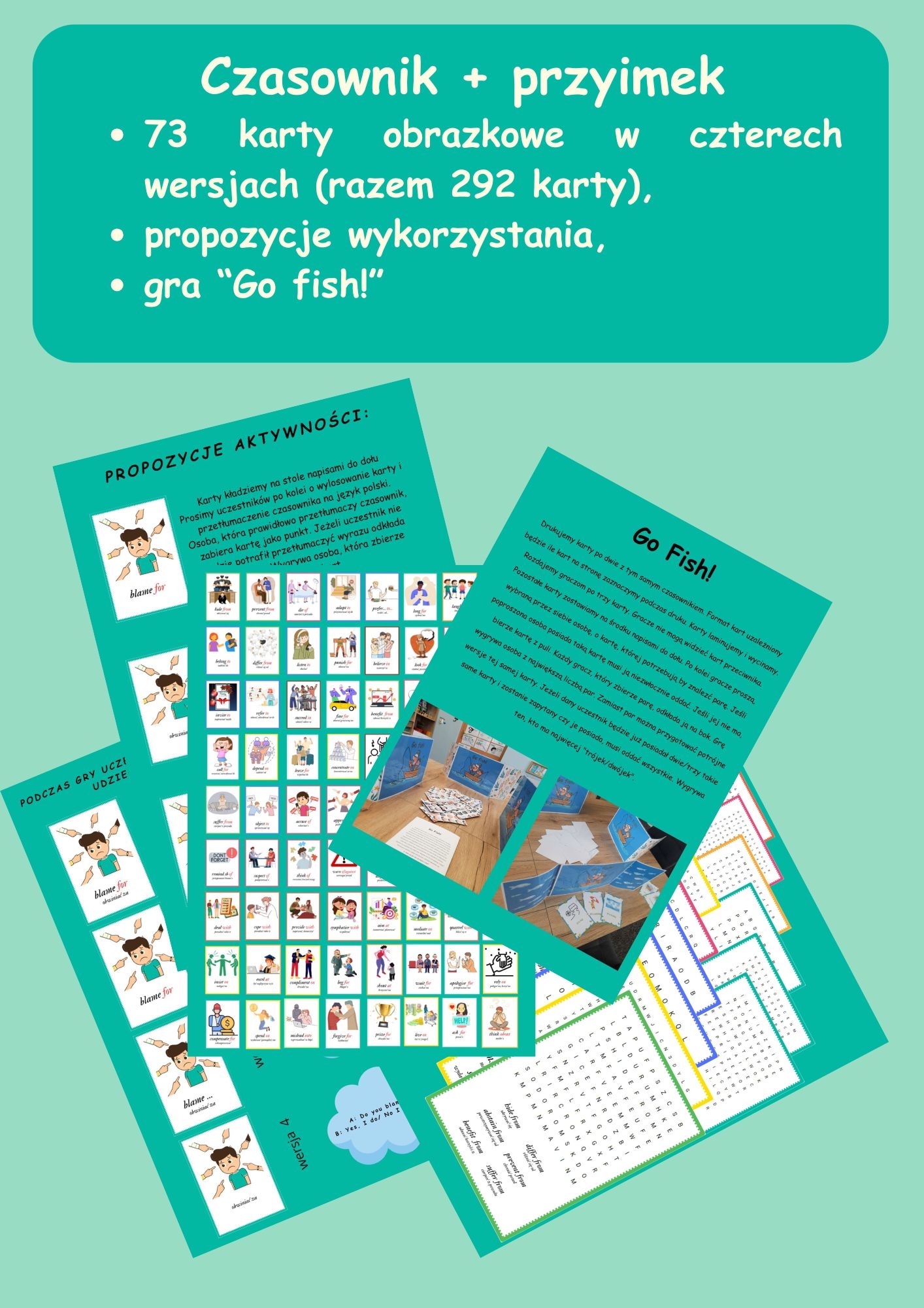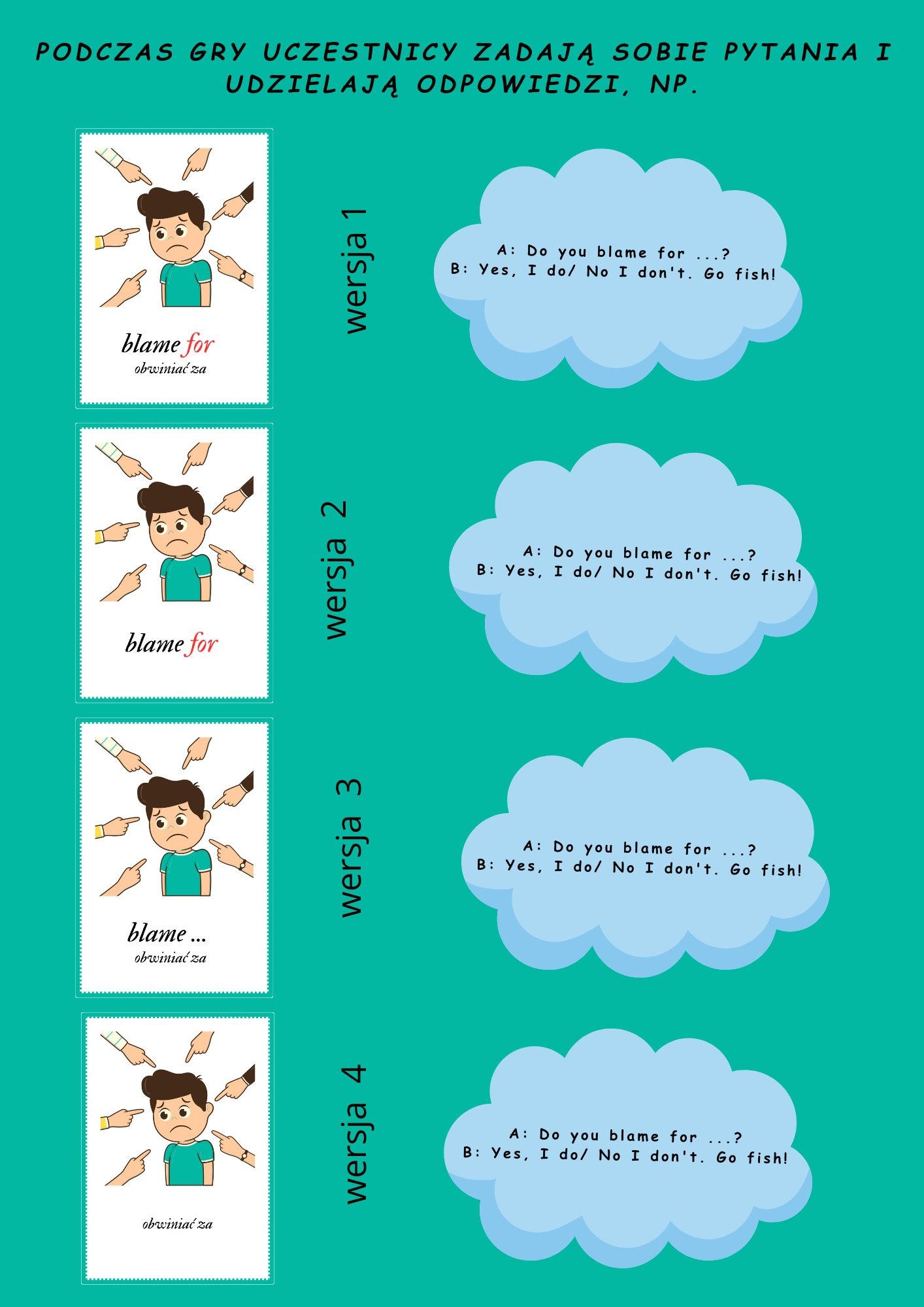 ✔ gotową do wykorzystania grę „Go Fish!”, która zachęca uczniów do zadawania pytań i udzielania odpowiedzi w języku angielskim