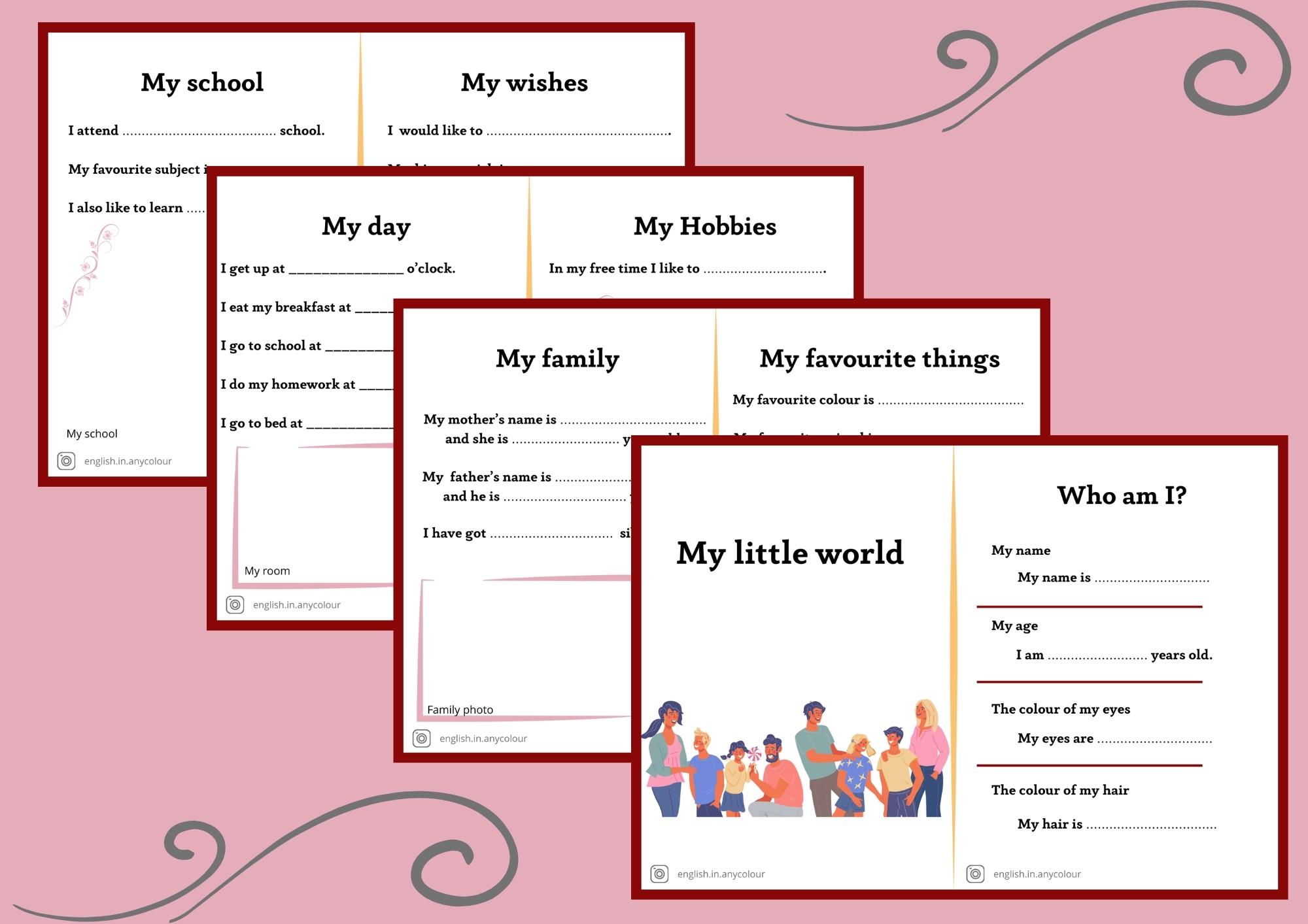 Język angielski. Mini książeczka/paszport do uzupełniania przez uczniów pt. „My little world” (Mój mały świat) przeznaczonej dla uczniów na poziomie A1. Książeczka skupi się na umiejętności przedstawiania się oraz opisania swojej codzienności.