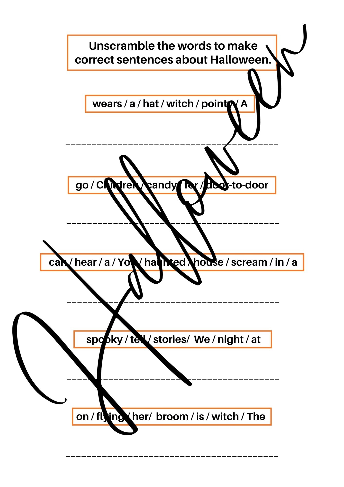 Wypełnianie Luk: Utrwalenie słownictwa tematycznego (np. candy, pumpkins, trick-or-treat) w kontekście zdania.