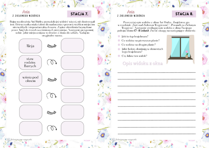 Stacje zadaniowe (10 stacji) do lektury Ania z Zielonego Wzgórza: