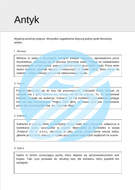 Karty pracy „Antyk – Najważniejsze Zagadnienia” to idealne narzędzie edukacyjne dla maturzystów, którzy chcą skutecznie przygotować się do egzaminu maturalnego z języka polskiego. Zawierają one kluczowe zagadnienia związane z okresem antyku, prezentując najważniejsze tematy, postacie, prądy literackie i filozoficzne tego okresu. Karty pracy umożliwiają nie tylko przyswojenie teorii, ale także skuteczne utrwalenie materiału poprzez ćwiczenia i zadania dopasowane do poziomu matury.