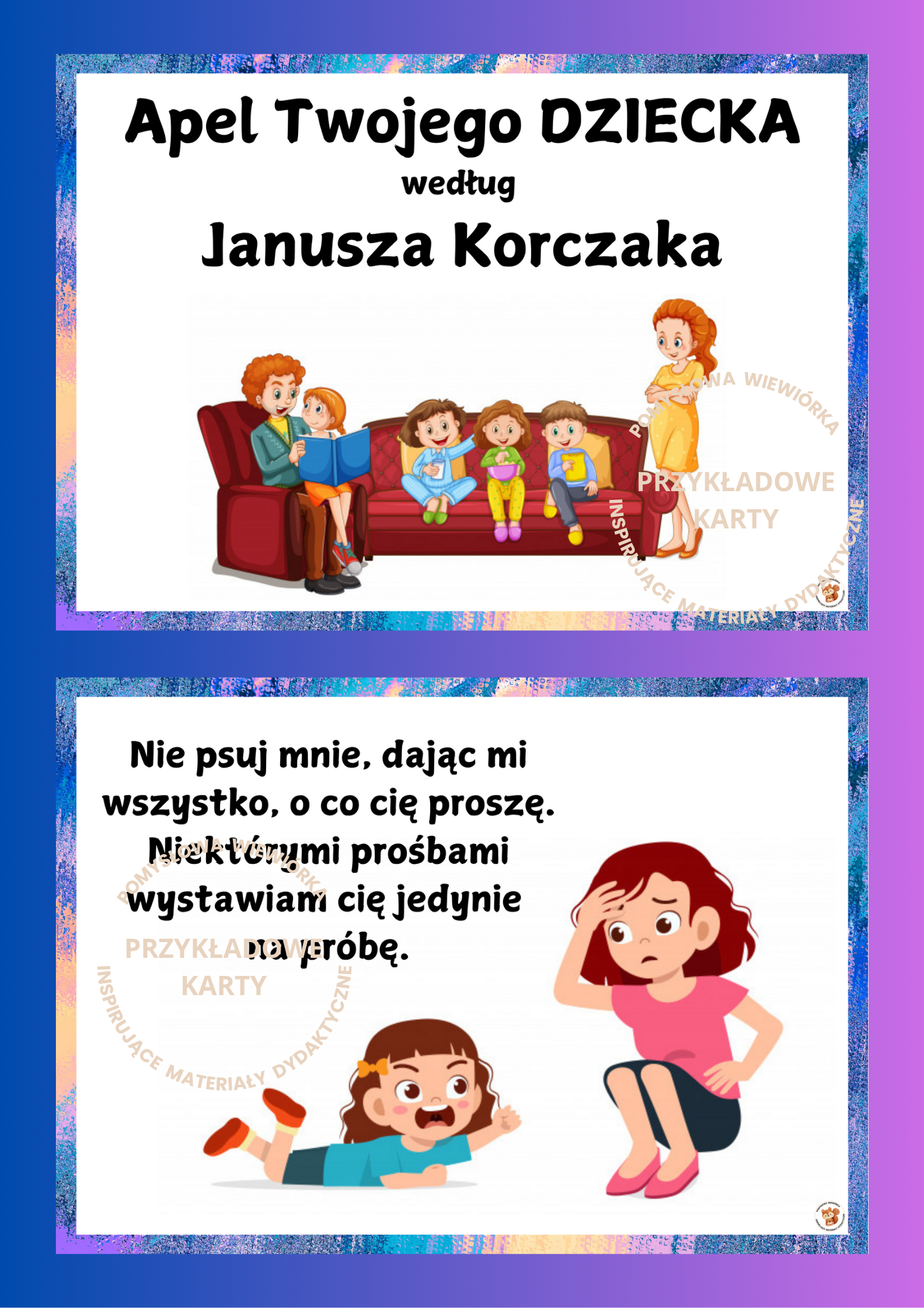 Zestaw plansz inspirowany myślą Janusza Korczaka, ukazujący dzieciństwo jako pełnoprawny etap życia. Doskonałe do rozmów o emocjach, godności i szacunku.