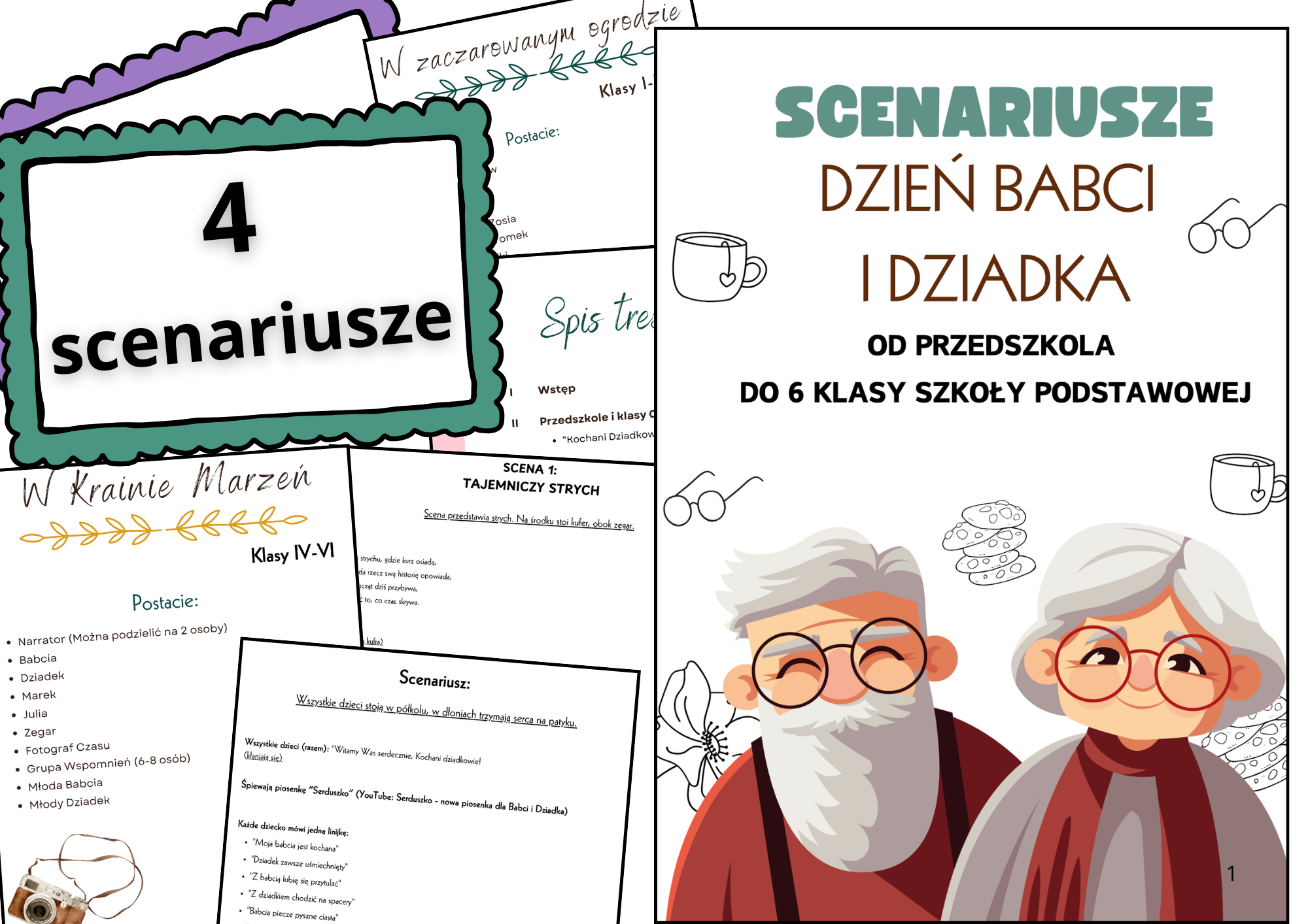 Słowa kluczowe: scenariusze na Dzień Babci i Dziadka, akademie szkolne, występy dla dzieci, ebook dla nauczycieli, przedszkola, klasy 1-3, klasy 4-6, dziadek, babcia, rodzina, kreatywność, podstawówka, uczniowie