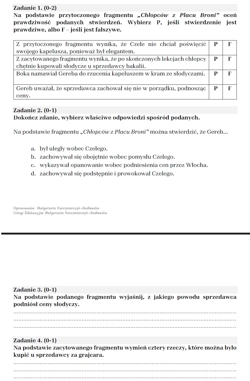 AUTORSKIE ARKUSZE POWTÓRKOWE PRZED EGZAMINEM ÓSMOKLASISTY – idealne do powtórek, zajęć indywidualnych i egzaminów próbnych!