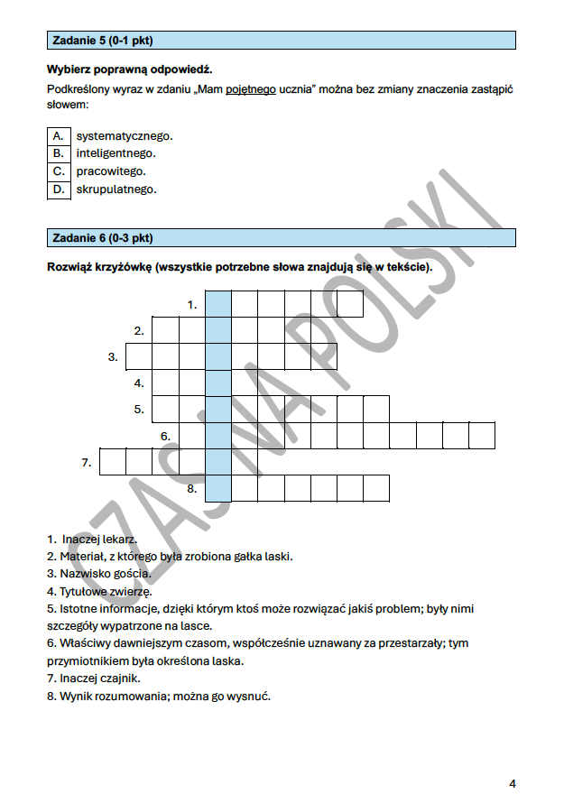 W zestawie znajdują się również odpowiedzi wraz z proponowaną punktacją.