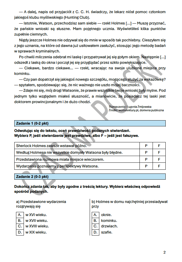 Materiał zawiera fragment książki Pies Baskerville’ów” Arthura Conan Doyle'a oraz zestaw różnego typu zadań (prawda-fałsz, jednokrotnego wyboru, krótkiej odpowiedzi, krzyżówka).