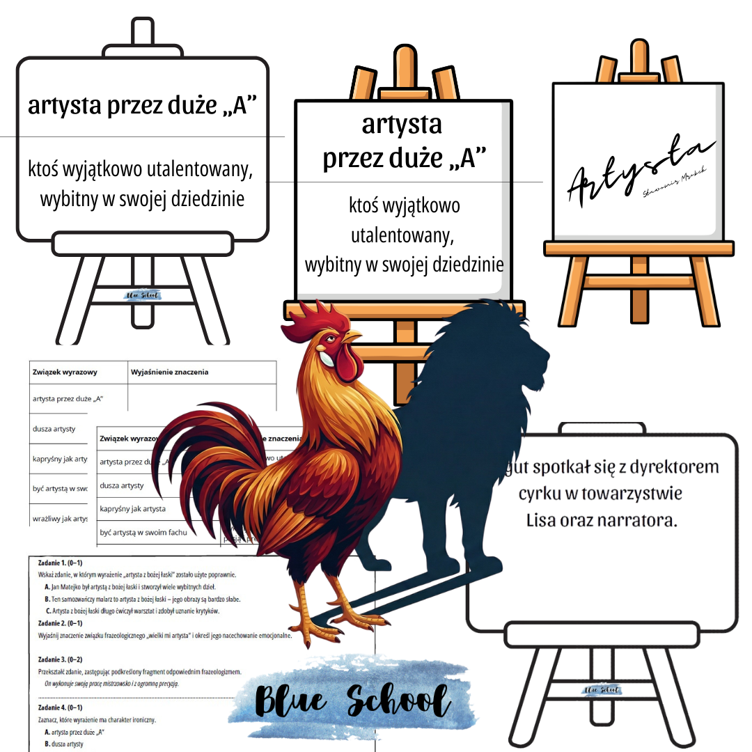 - związki frazeologiczne ze słowem artysta - w wariancie kolorowym i czarno-białym,