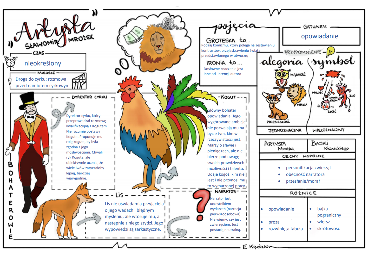 Materiał składa się z dwóch kart. Jedna jest planszą do uzupełnienia przez ucznia, druga jest pracą przykładowo wypełnioną.