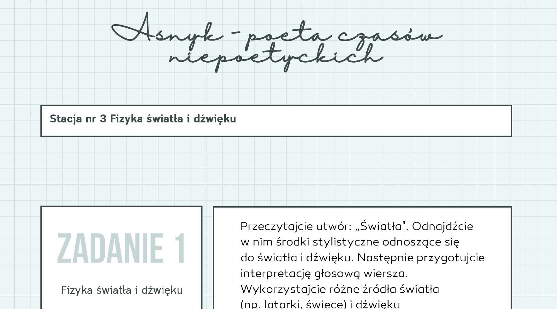 - Fizyka światła i dźwięku w wierszach Asnyka.