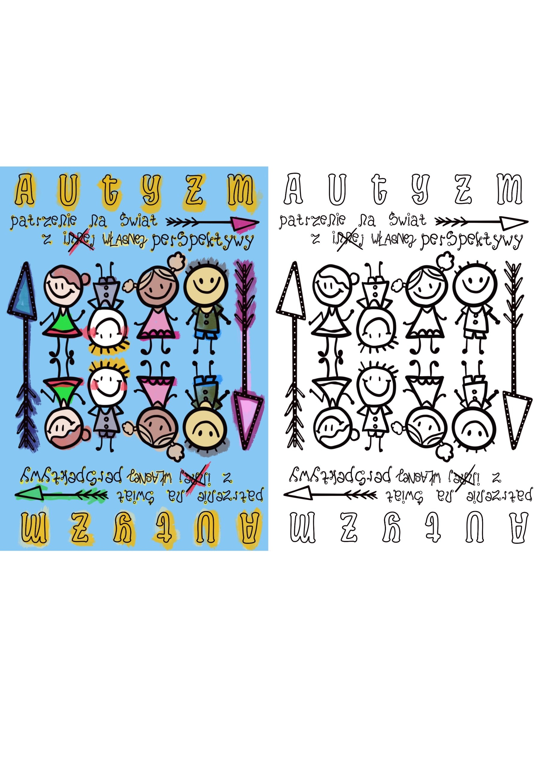 Światowy Dzień Świadomości Autyzmu. Plakat Autyzm z okazji Światowego Dnia Świadomości Autyzmu, na zajęcia wychowawcze, świetlicowe, specjalistyczne. Pdf do samodzielnego wydruku. Materiał zawiera tylko wersję czarno-białą.