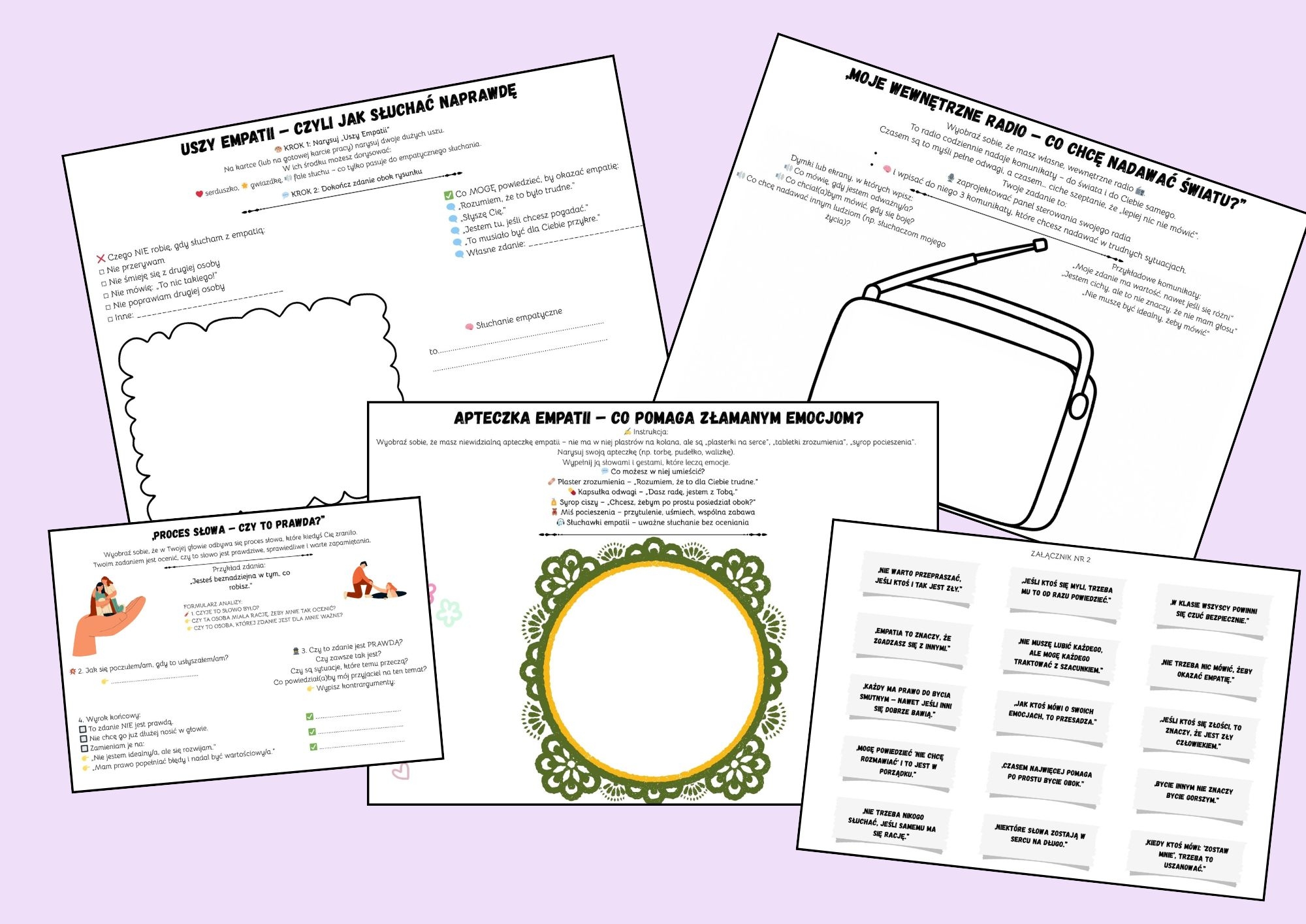 ✔️ Twórcze narzędzia: „Uszy Empatii”, „Apteczka Serc”, „Głosownik”, „Galeria Niedoskonałości”