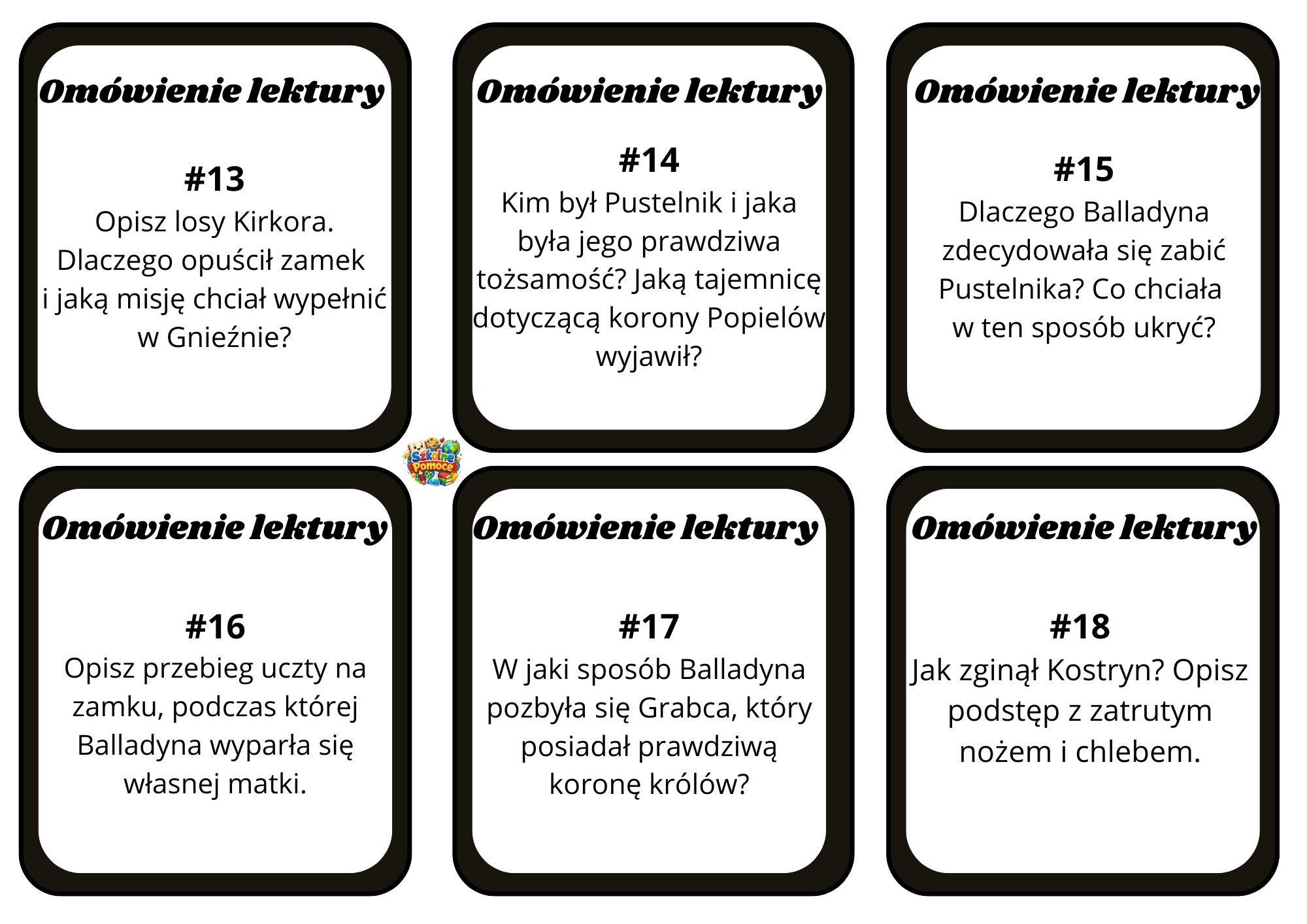 Szanowni Państwo, miejcie się na baczności – krew na czołach, maliny w dzbankach i... zero litości dla tych, którzy nie czytali! Przedstawiam „Krwawy Dzbanek” – zestaw kart z konkretnymi pytaniami sprawdzającymi znajomość treści Balladyny Juliusza Słowackiego.