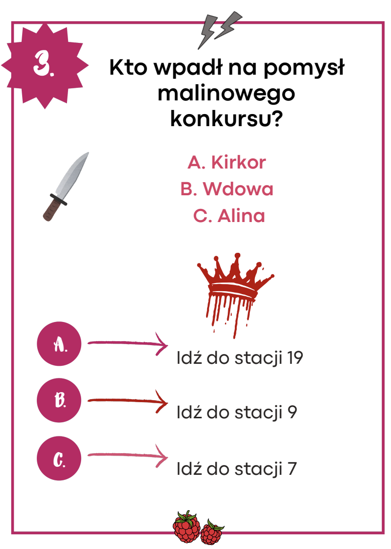 20 stacji zadaniowych (jedna poprawna odpowiedź w każdym zadaniu),