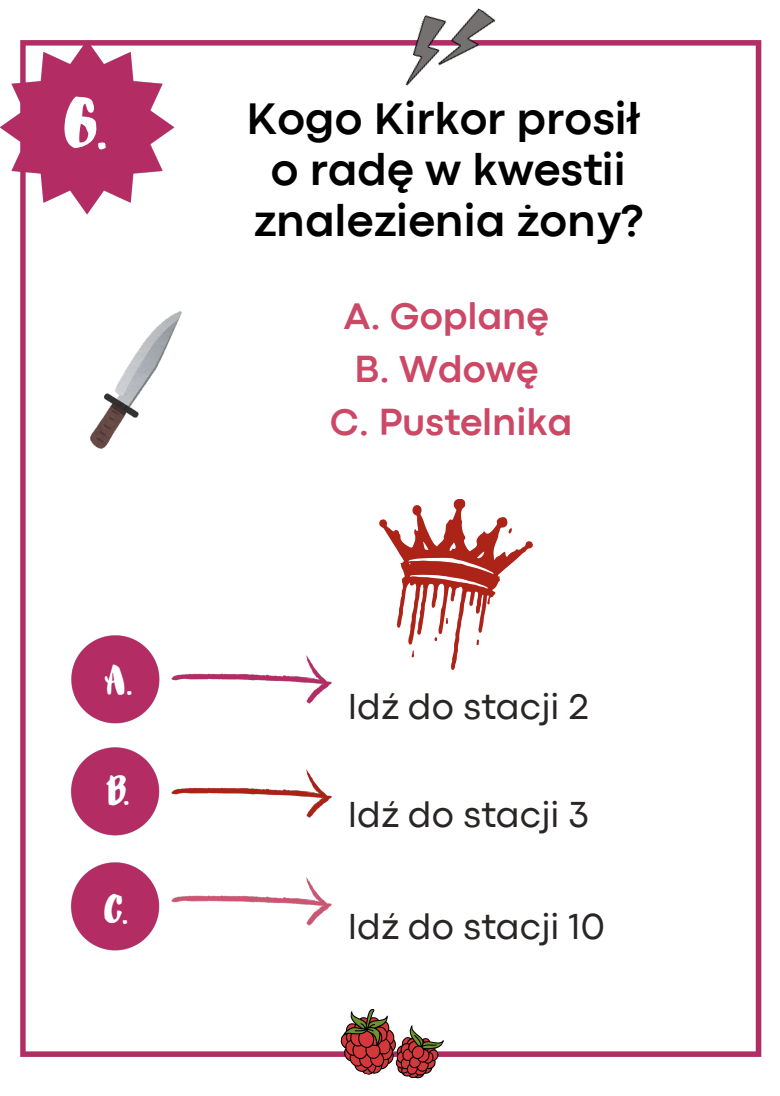 Zestaw 20 zapętlonych stacji zadaniowych do lektury „Balladyna” Juliusza Słowackiego, przeznaczony do pracy w ruchu – w sali lub na korytarzu. Zadania mają formę pytań faktograficznych typu kto? co? dlaczego? i pozwalają skutecznie utrwalić treść dramatu.