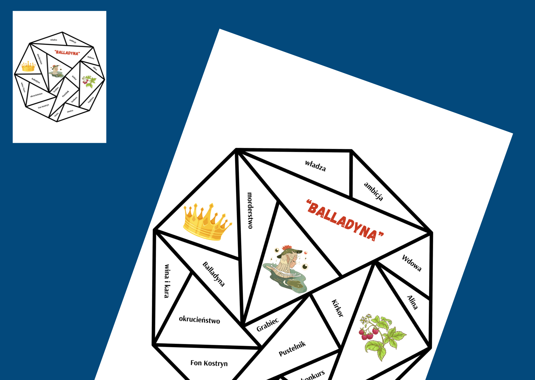 Puzzle, które zawierają skojarzenia związane z lekturą. Na pozostałych moich aukcjach można zakupić pojedyncze puzzle dotyczące innych lektur z klas 4-8, a także zestawy (można wykorzystać każdy rodzaj oddzielnie lub wszystkie – mają ten sam układ):