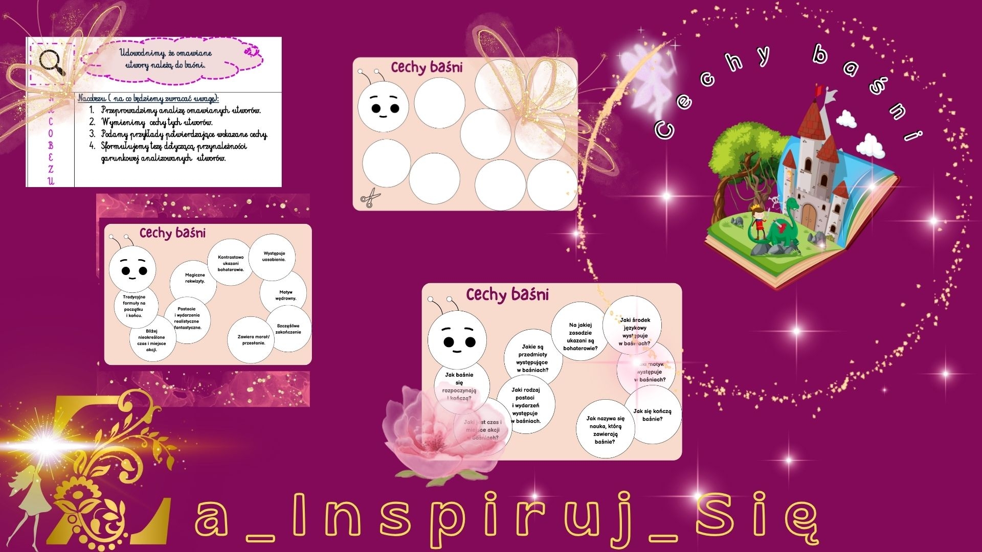 Znajdziesz tu materiały do omówienia 3 baśni ( "Kopciuszek", Królowa pszczół", " Bajka o rybaku i rybce") i cech gatunkowych, a w nim: