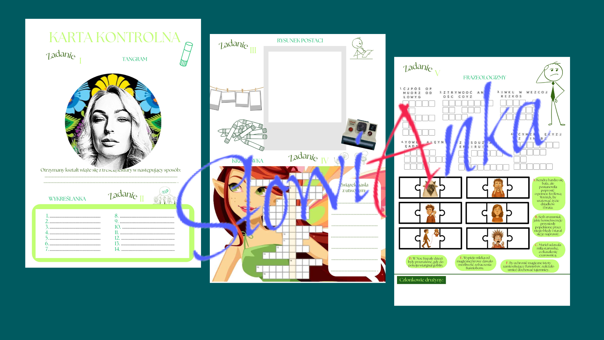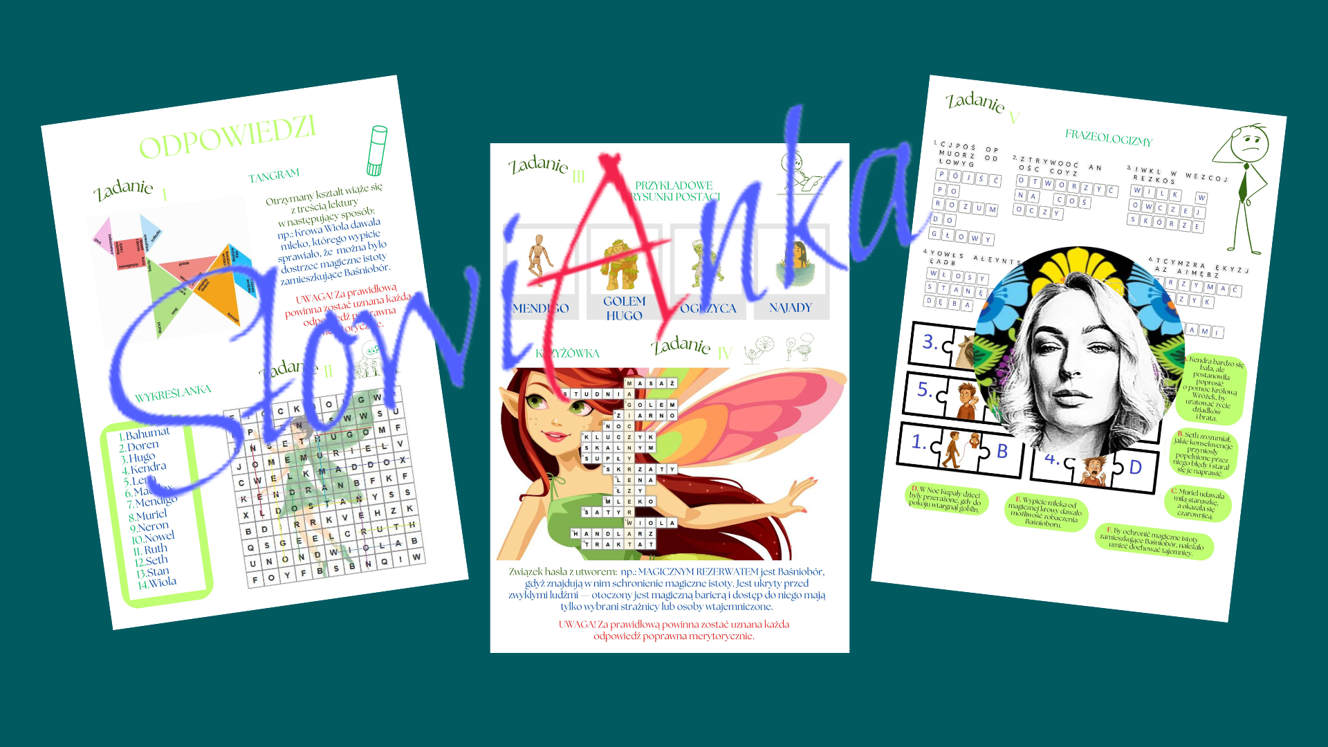– rozwiązanie krzyżówki i wytłumaczenie związku hasła z treścią powieści;