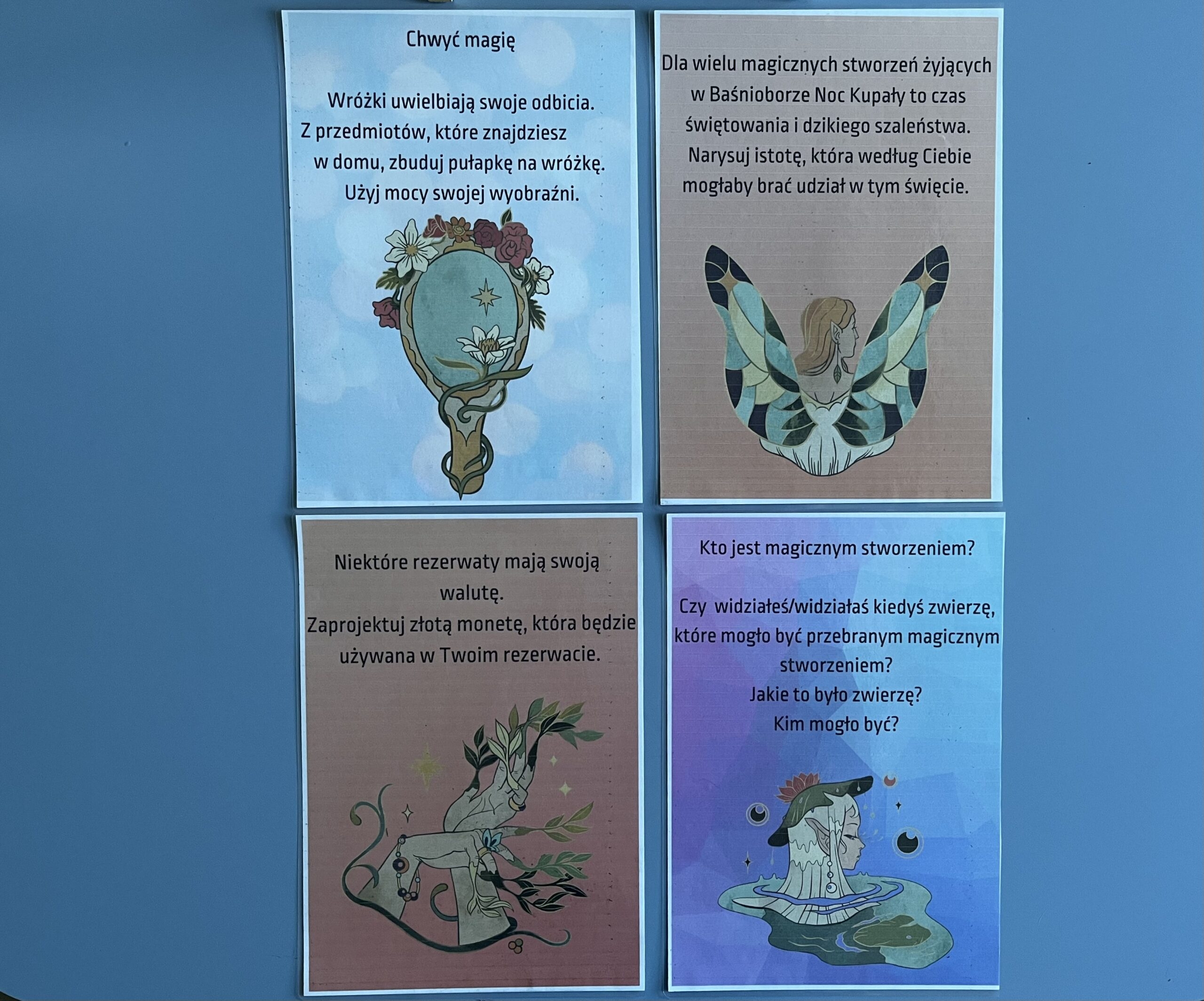 Są to zarówno zadania literacki, jak np. napisanie ogłoszenia oraz kreatywne (skonstruowanie pułapki na wróżkę).