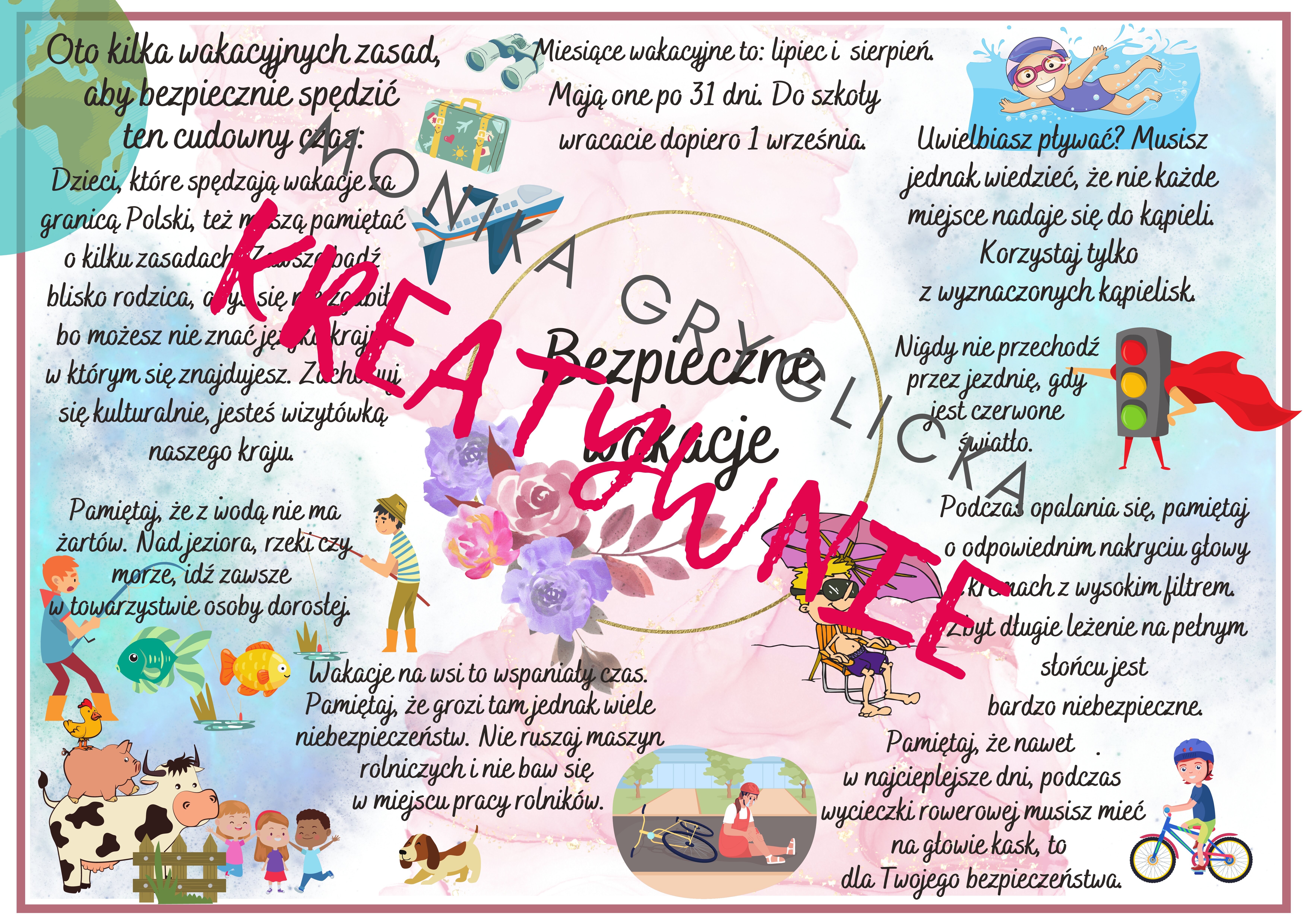 Wklejka do zeszytu lub karta do omówienia Bezpiecznych Wakacji.