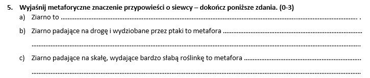 5. Zadanie dot. metaforycznego znaczenia przypowieści o siewcy - niedokończone zdania.