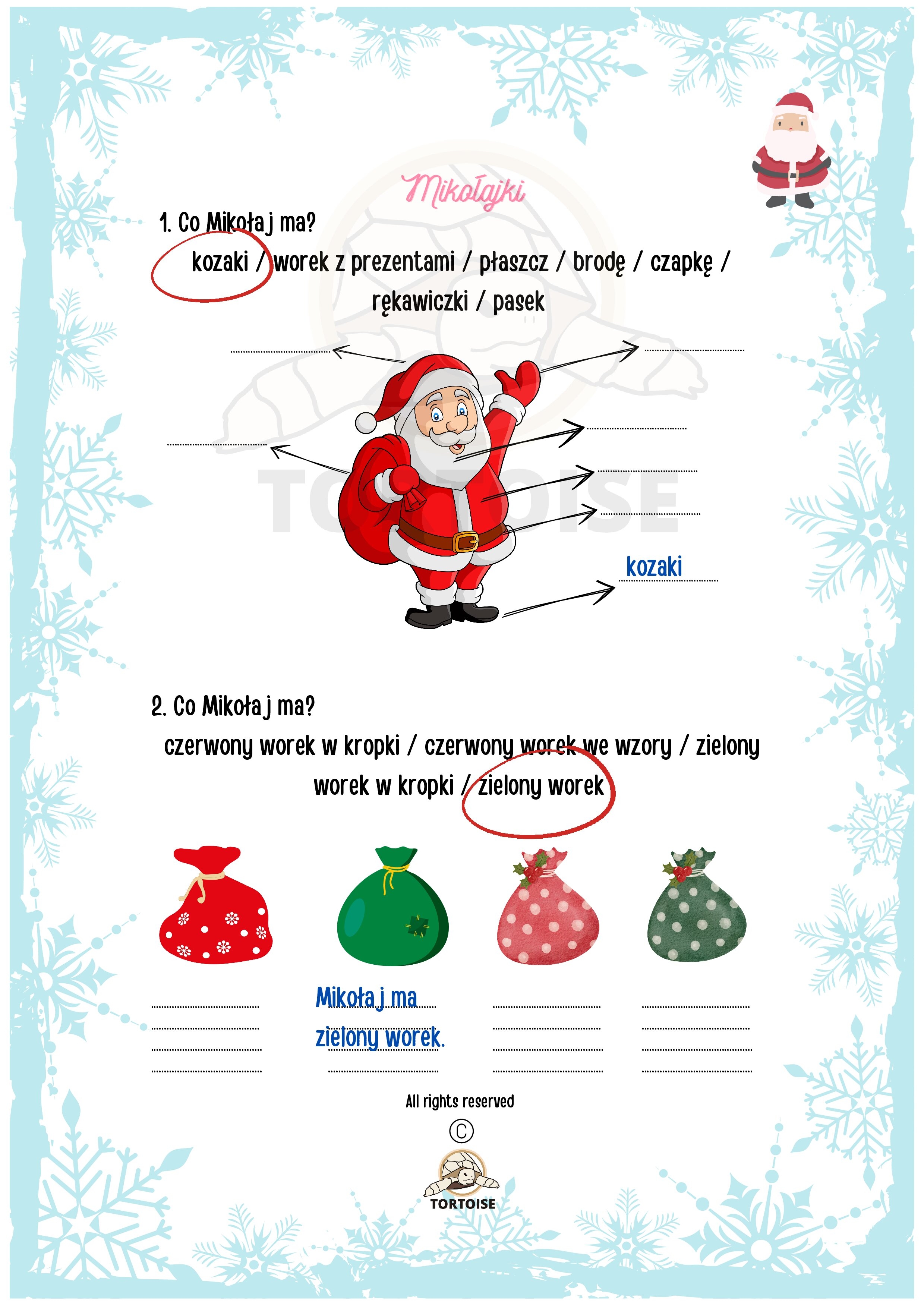 Mam dla Państwa kartę pracy do nauki biernika dla dzieci i młodzieży dla poziomu A1, którego tematem jest głównie postać Świętego Mikołaja. Wszystkie zadania skupiają się wokół czasowników "mieć" oraz "prosić o", które, jak wiemy, łączą się z rzeczownikiem w bierniku.