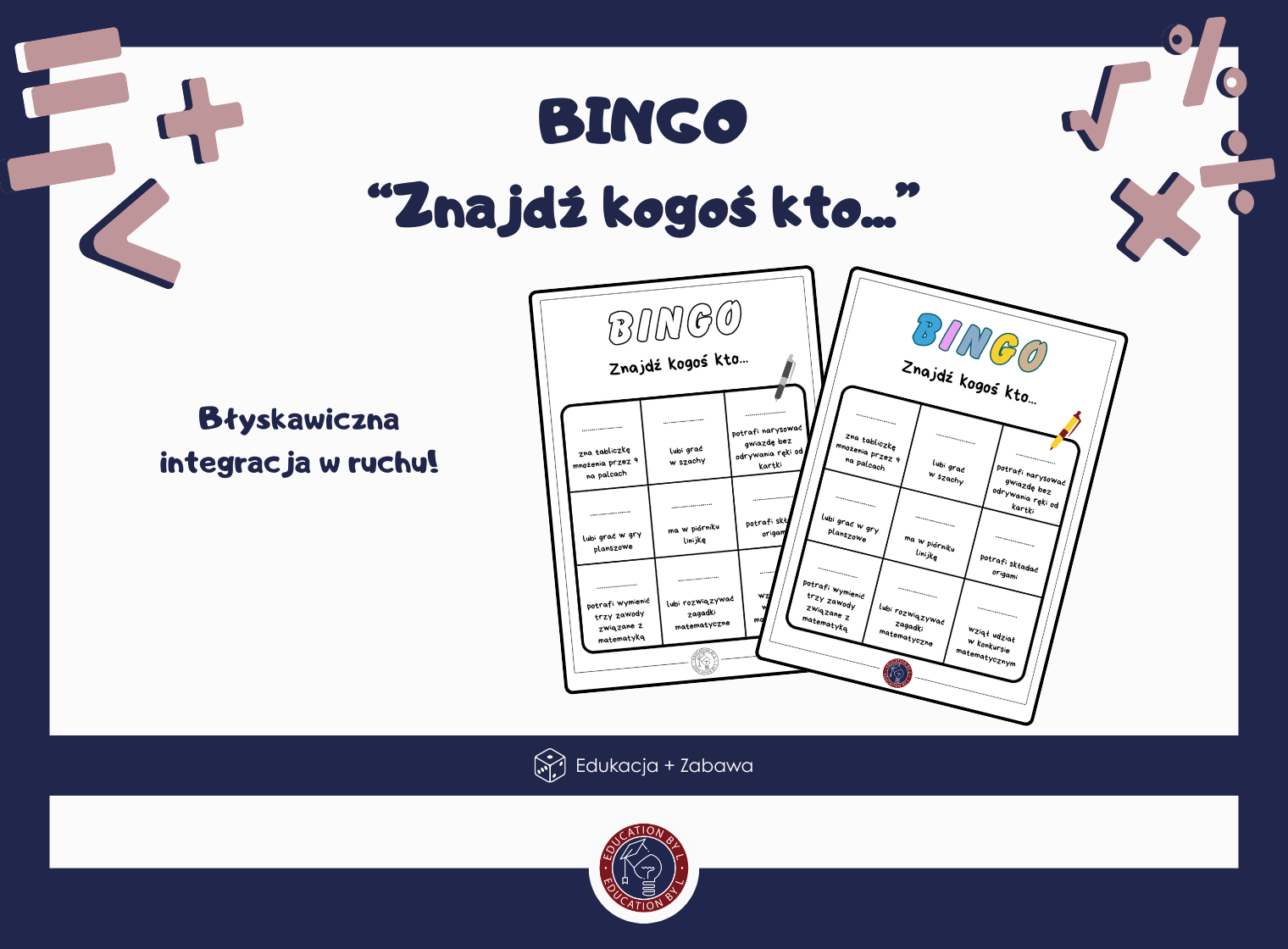 Nic tak nie przełamuje lodów i nie buduje relacji jak wspólna zabawa! Bingo matematyczne w wersji „Znajdź kogoś, kto...” to genialne narzędzie, które zmusza uczniów do wstania z ławek, rozmowy i wzajemnego poznawania się. To nie jest zwykłe siedzenie nad kartką – to 15 minut intensywnej, pozytywnej energii, która sprawi, że atmosfera w Twojej klasie od razu stanie się lepsza.