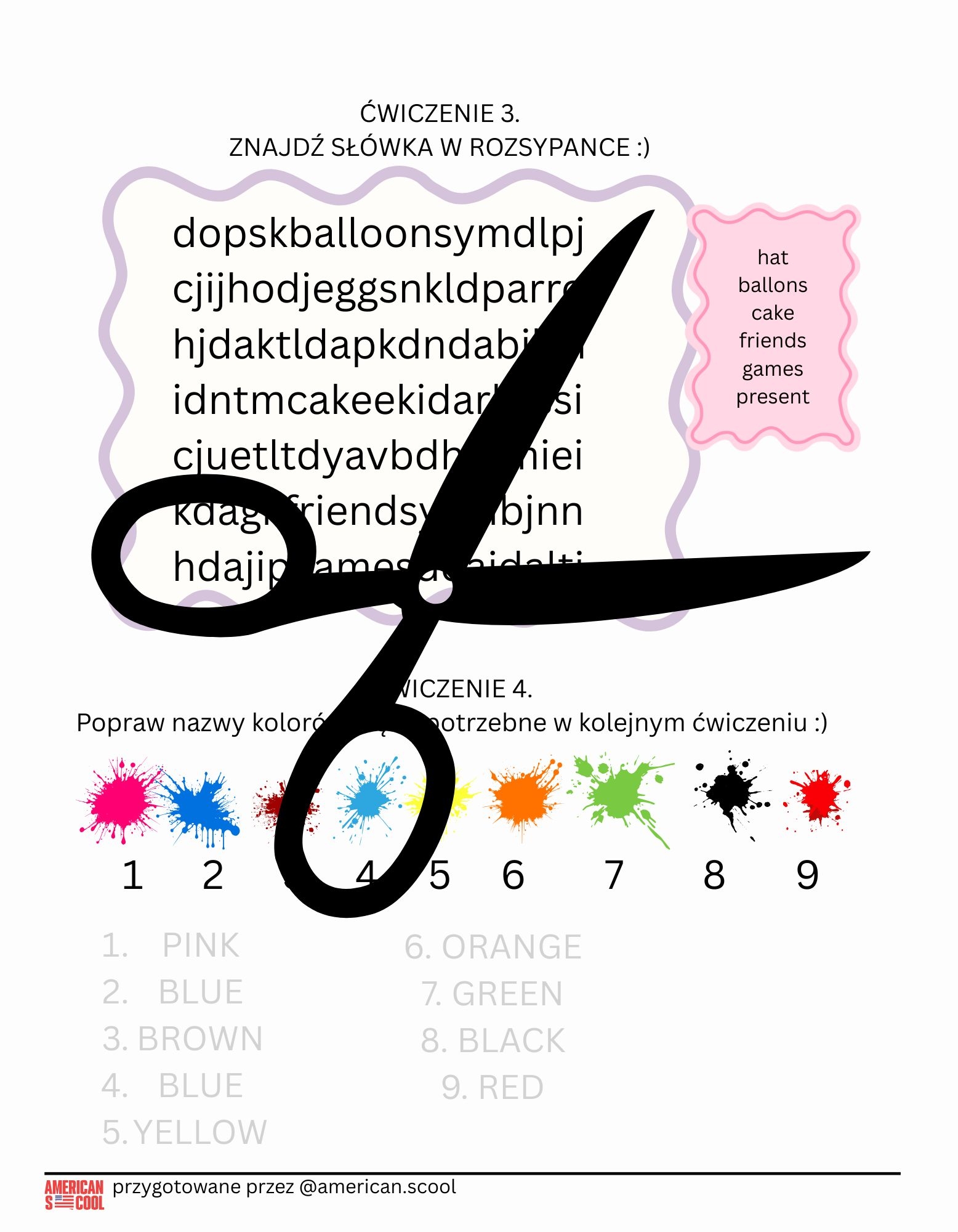 - memory do wycięcia, pokolorowania i podpisania po szlaczku.