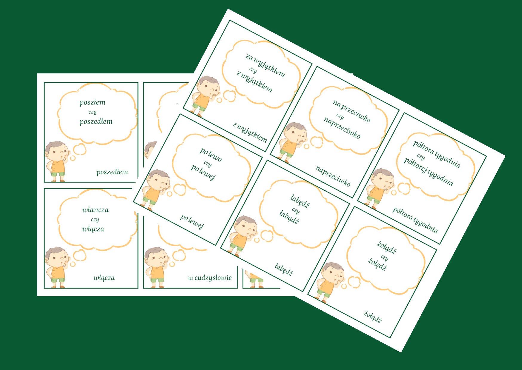 BŁĘDY JĘZYKOWE - fiszki - 30 szt. - 2 wersje + odpowiedzi - Dzień Języka Ojczystego