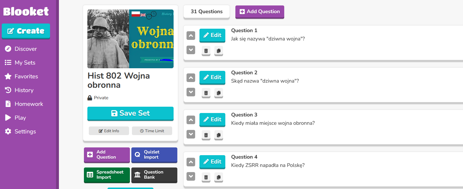 Uwaga, Blooket ma czasem problem z językiem polskim.