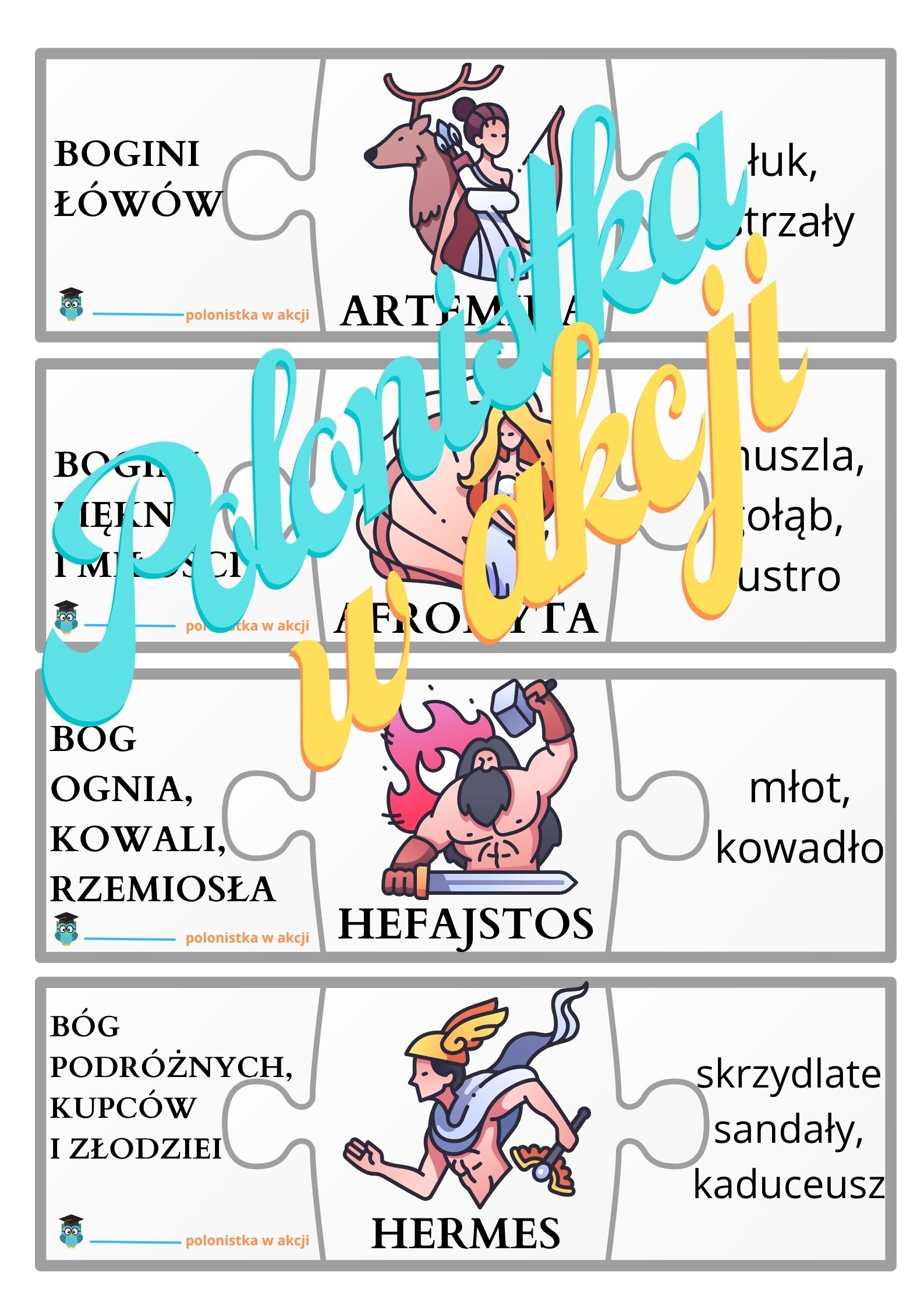 Poznaj bogów Olimpu z nowymi edukacyjnymi puzzlami! Szukasz ciekawego sposobu, by Twoi uczniowie zapamiętali greckich bogów raz na zawsze? W zestawie znajdziesz 4 karty po 4 trójdzielne puzzle mitologiczne - to idealne połączenie zabawy i nauki!