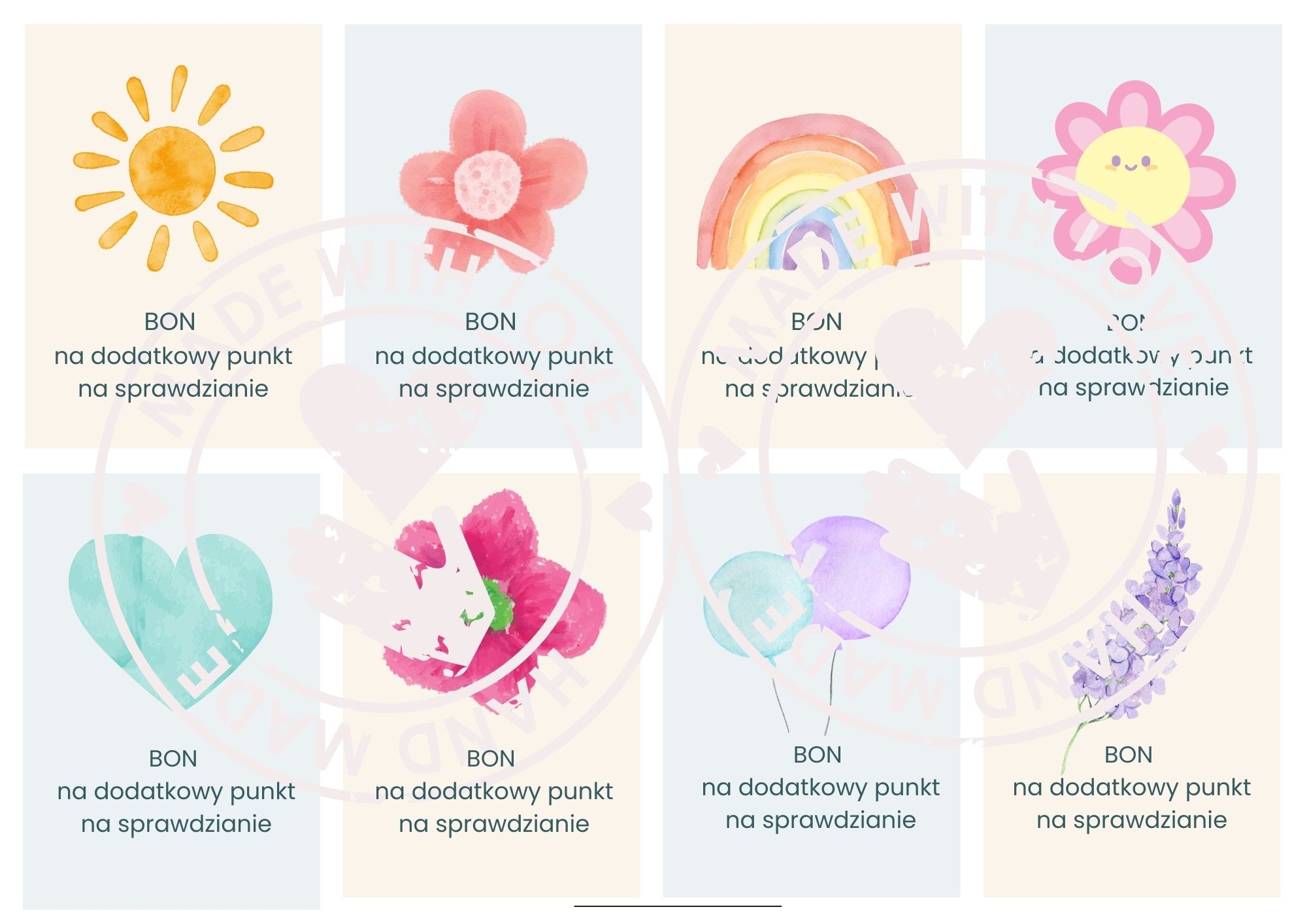 Bon na dodatkowy punkt na sprawdzianie – daje uczniowi możliwość podniesienia oceny o jeden punkt w wybranym sprawdzianie.