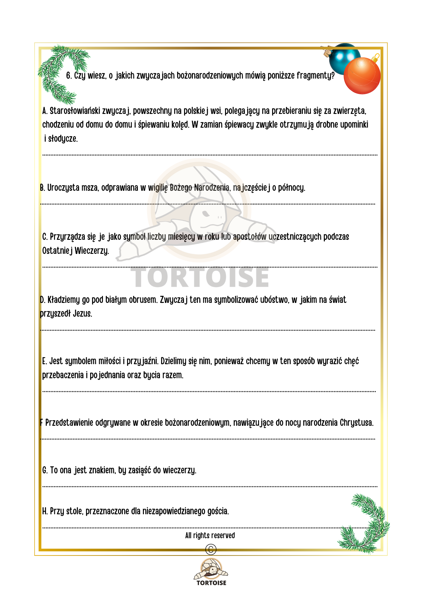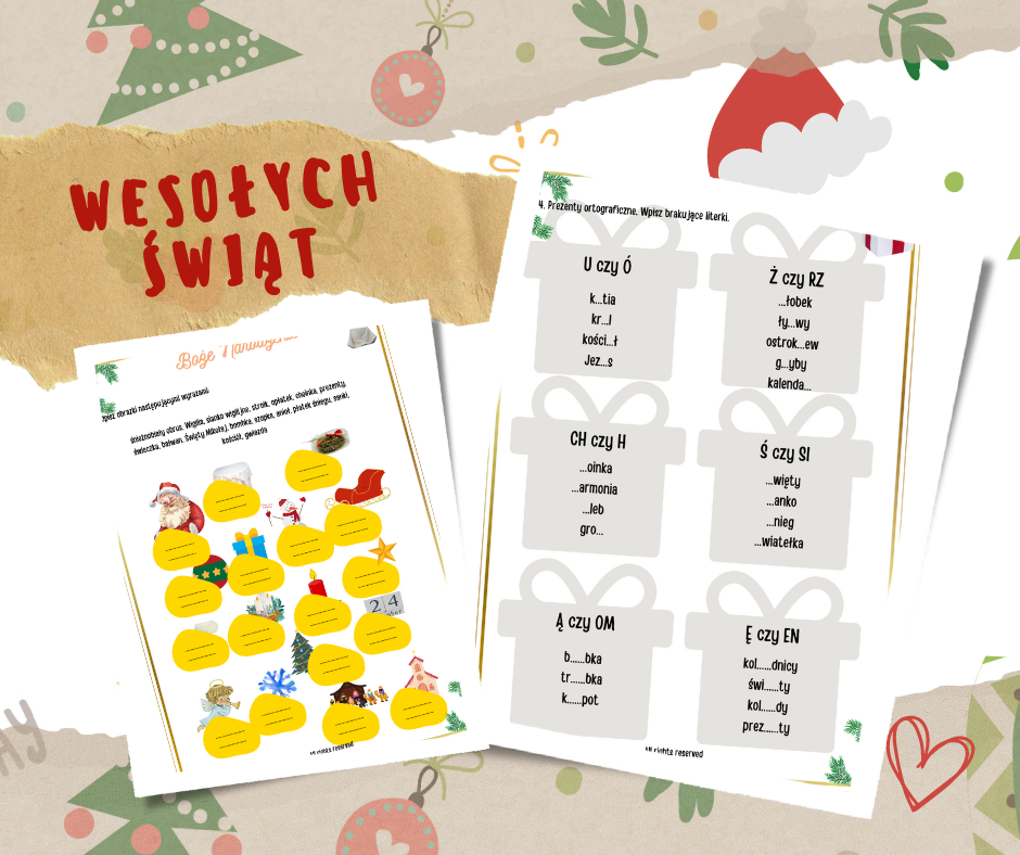 Plik „Boże Narodzenie” to stacje zadaniowe o tematyce bożonarodzeniowej dla dzieci uczących się polskiego jako języka obcego. Pakiet składa się z 17 zadań, które ćwiczą język polski na poziomie słowa, zdań i tekstu i rozwijają takie umiejętności jak czytanie ze zrozumieniem oraz pisanie.  Dzieci dostają zagadki (w tym też zagadki matematyczne) oraz ćwiczenia, które rozwijają myślenie krytyczno-analityczne.