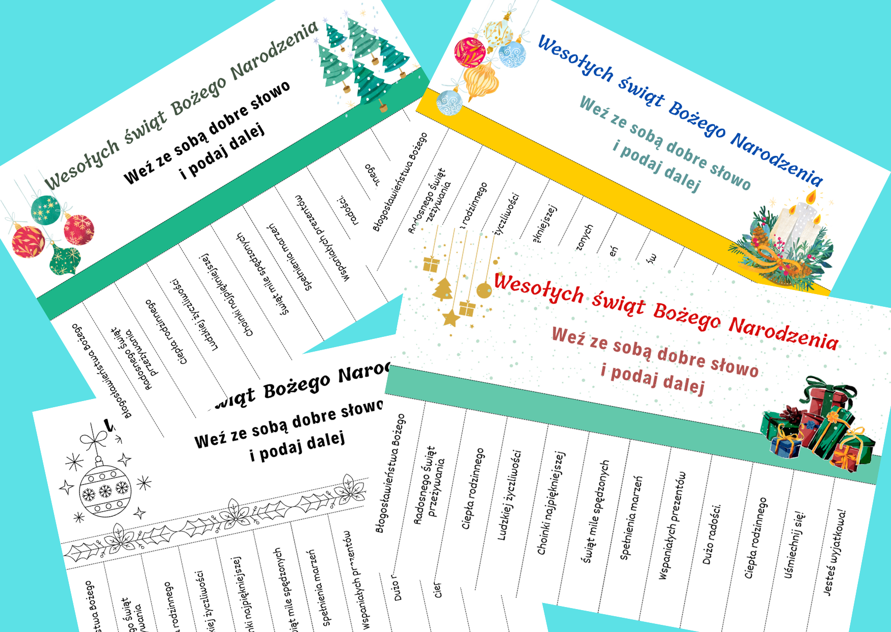 🎄✨❄️Świąteczna Skrzynka Dobrych Myśli – gotowe karteczki z życzeniami - 🎅Boże Narodzenie - biblioteka- zajęcia z wychowawcą - świetlica - 72 szt.
