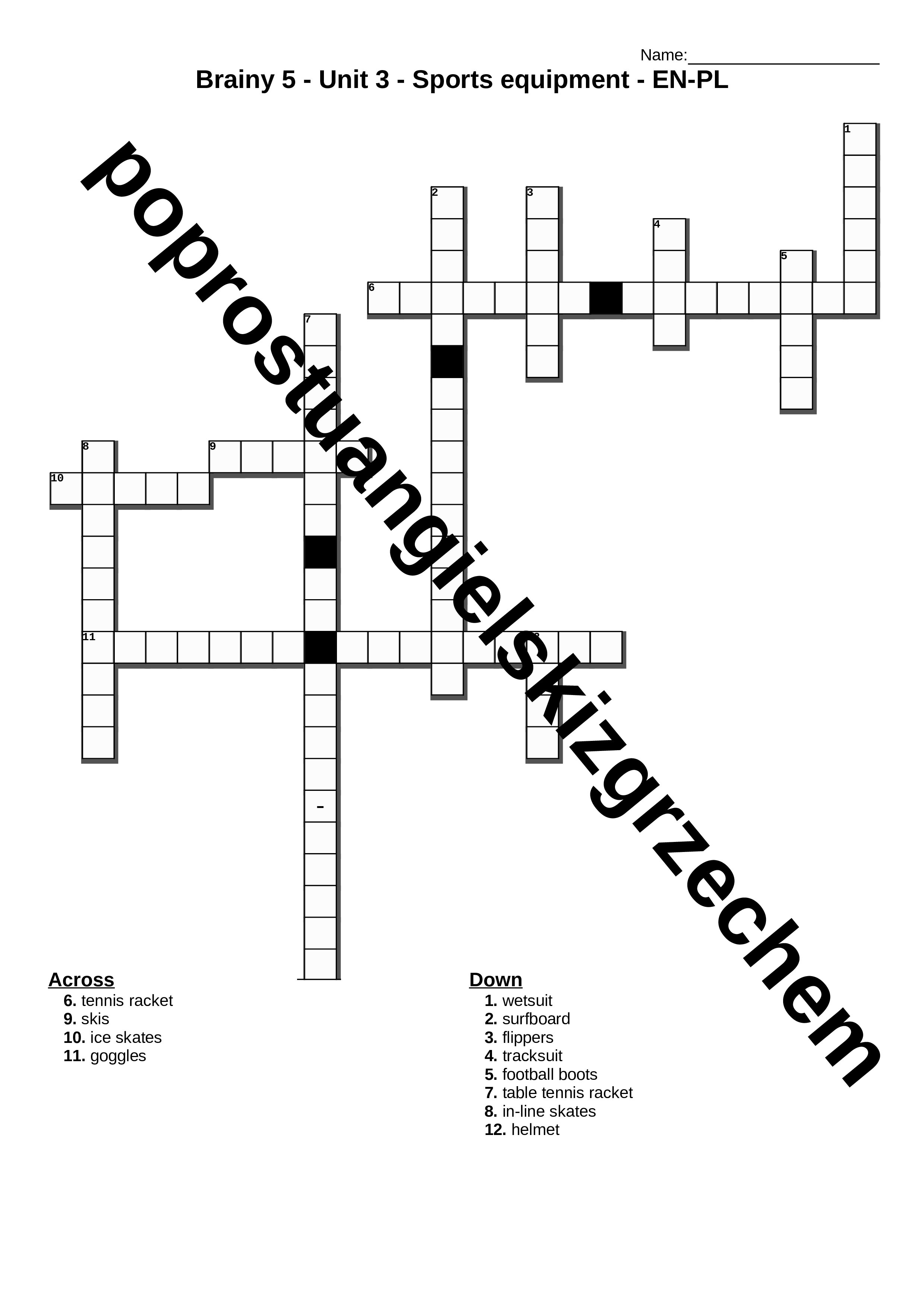 Zestaw zawiera łącznie 4 krzyżówki (2x PL-EN + 2x EN-PL) oraz klucz z odpowiedziami. Zakres słówek obejmuje dział trzeci z podręcznika Brainy 5. Krzyżówki składają się od kilku (zwykle nie mniej niż 8) do maksymalnie 30 słówek.
