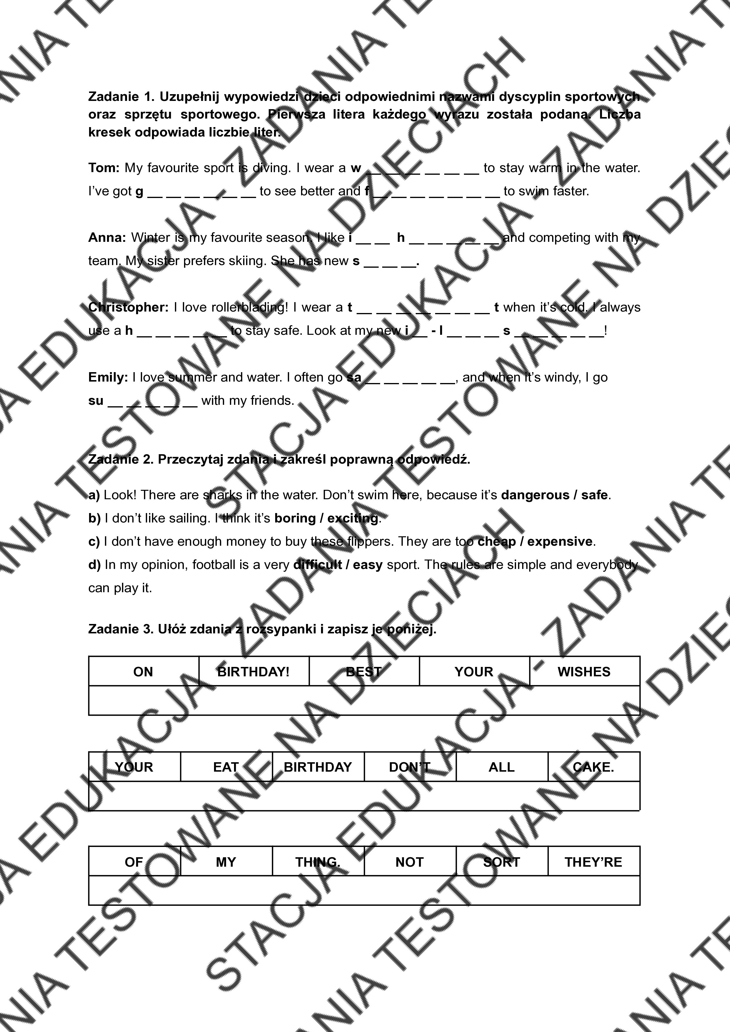 ✓ Zadania otwarte i porównania sportów, idealne pod część pisemną testu.