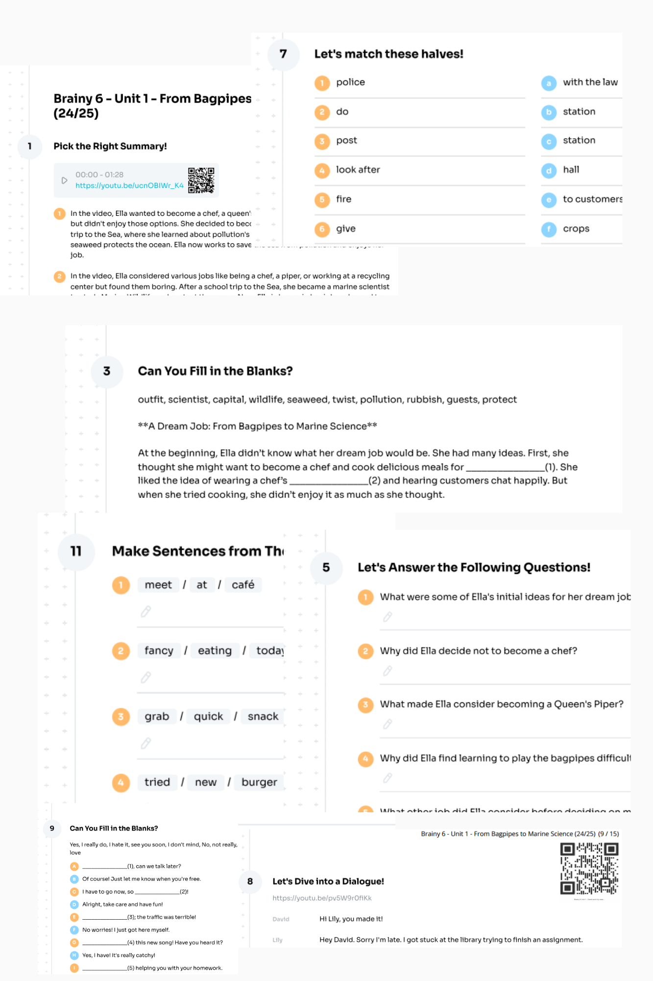 Bez wątpienia! Niniejszy materiał daje Ci dużo swobody w jego całościowym lub częściowym wykorzystaniu. Możesz wydrukować kartę pracy lub zaprezentować na ekranie. Jeśli zdecydujesz się na wersję papierową, kod QR pozwoli Ci na szybkie odsłuchanie plików audio za pomocą telefonu. Jeśli natomiast korzystasz z wersji elektronicznej po prostu kliknij w link i gotowe. Dostajesz również pliki audio w formacie MP3, więc brak dostępu do internetu nie będzie problemem.