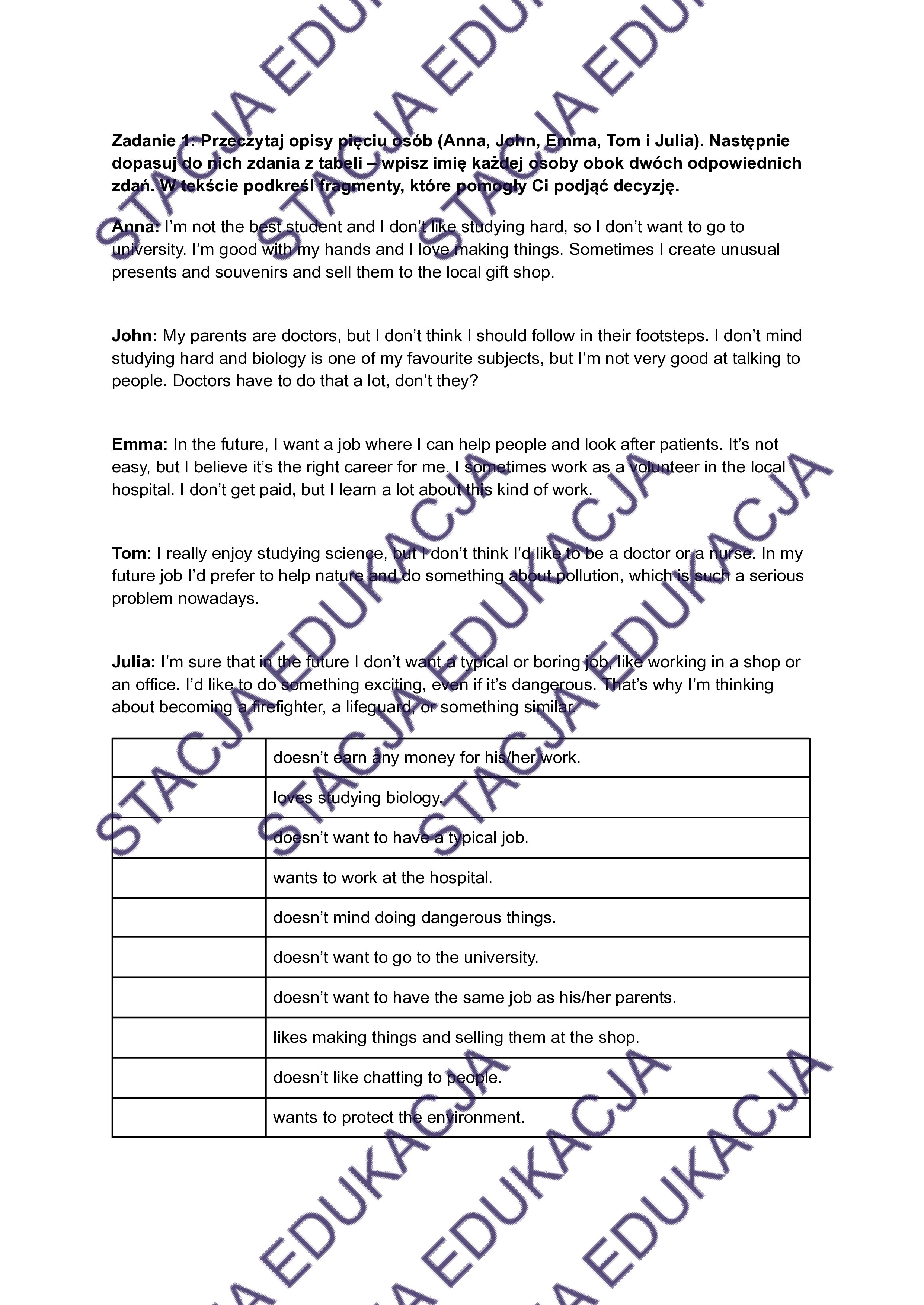 Zadanie 6: Tekst z lukami – „My future job? A plumber!”.