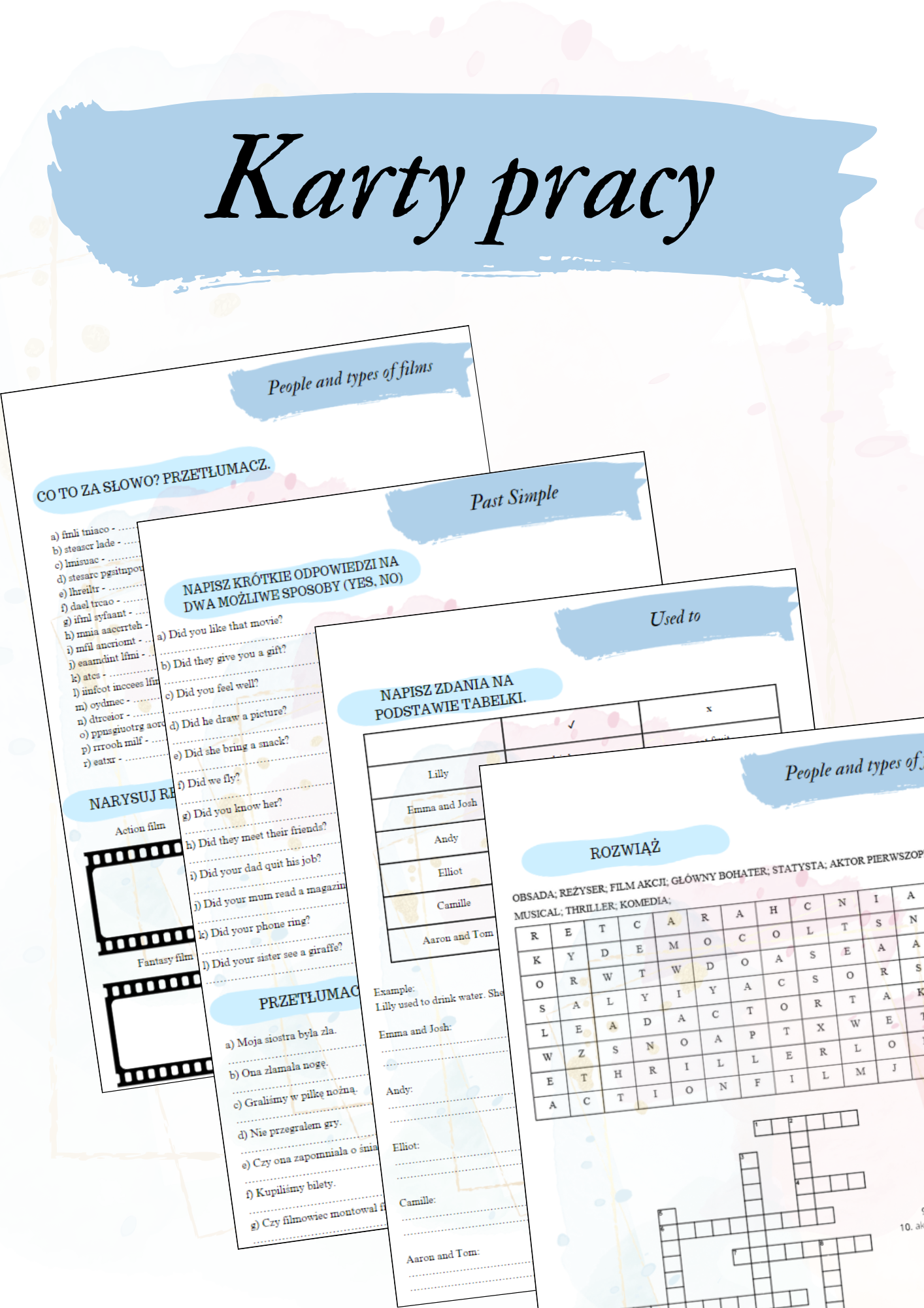 Karty pracy stworzone na podstawie materiału z podręcznika do j. angielskiego Brainy 7, rozdział 1. Znajdują się w nich: