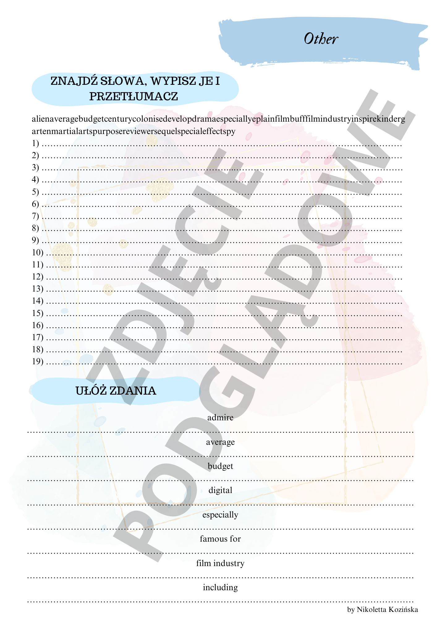 - 99 kart powtórzeniowych z różnymi zadaniami z zakresu rodzajów filmów oraz gramatyki (z odpowiedziami; wersja zwykła oraz print friendly)