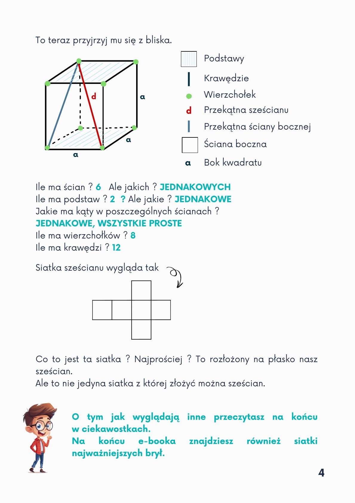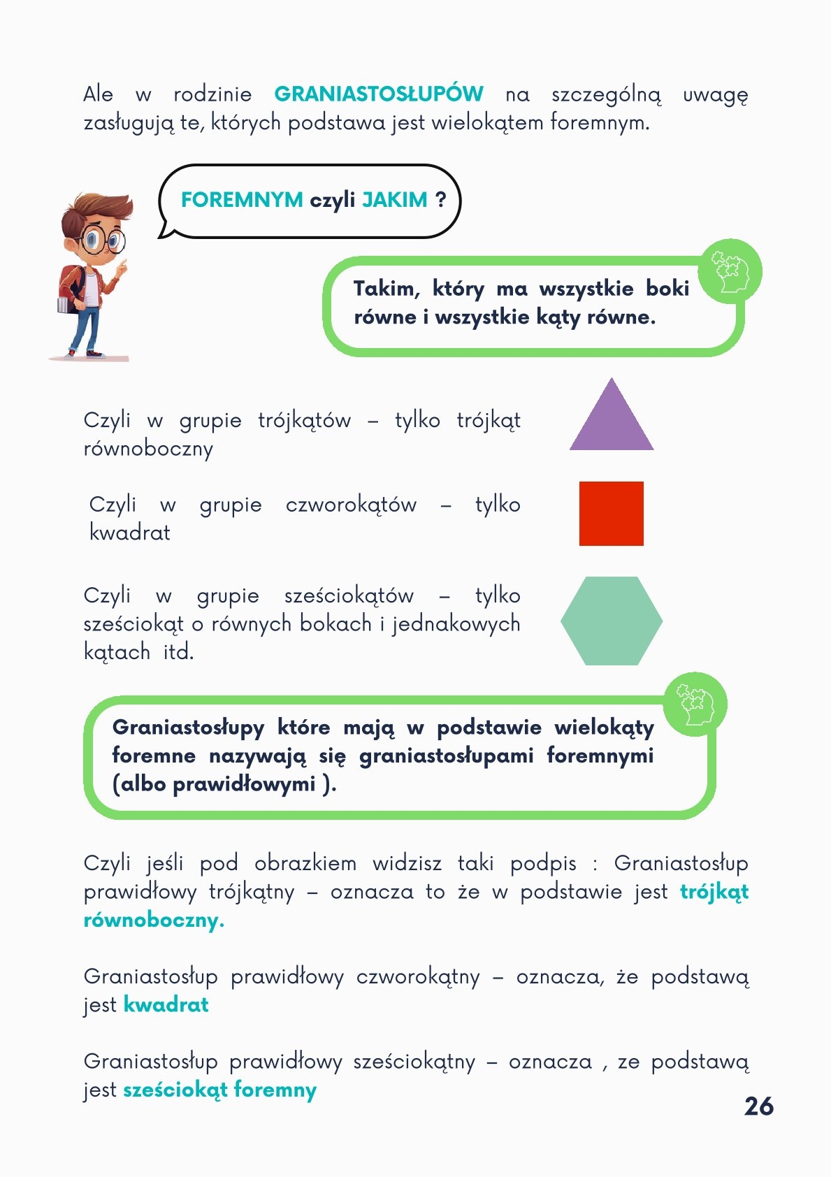 Zaczęliśmy od najpopularniejszych – sześcianu i prostopadłościanu. Powoli, czytelnie, dokładnie. Potem przyszła pora na rodzinkę GRANIASTOSŁUPÓW. Następne były OSTROSŁUPY.