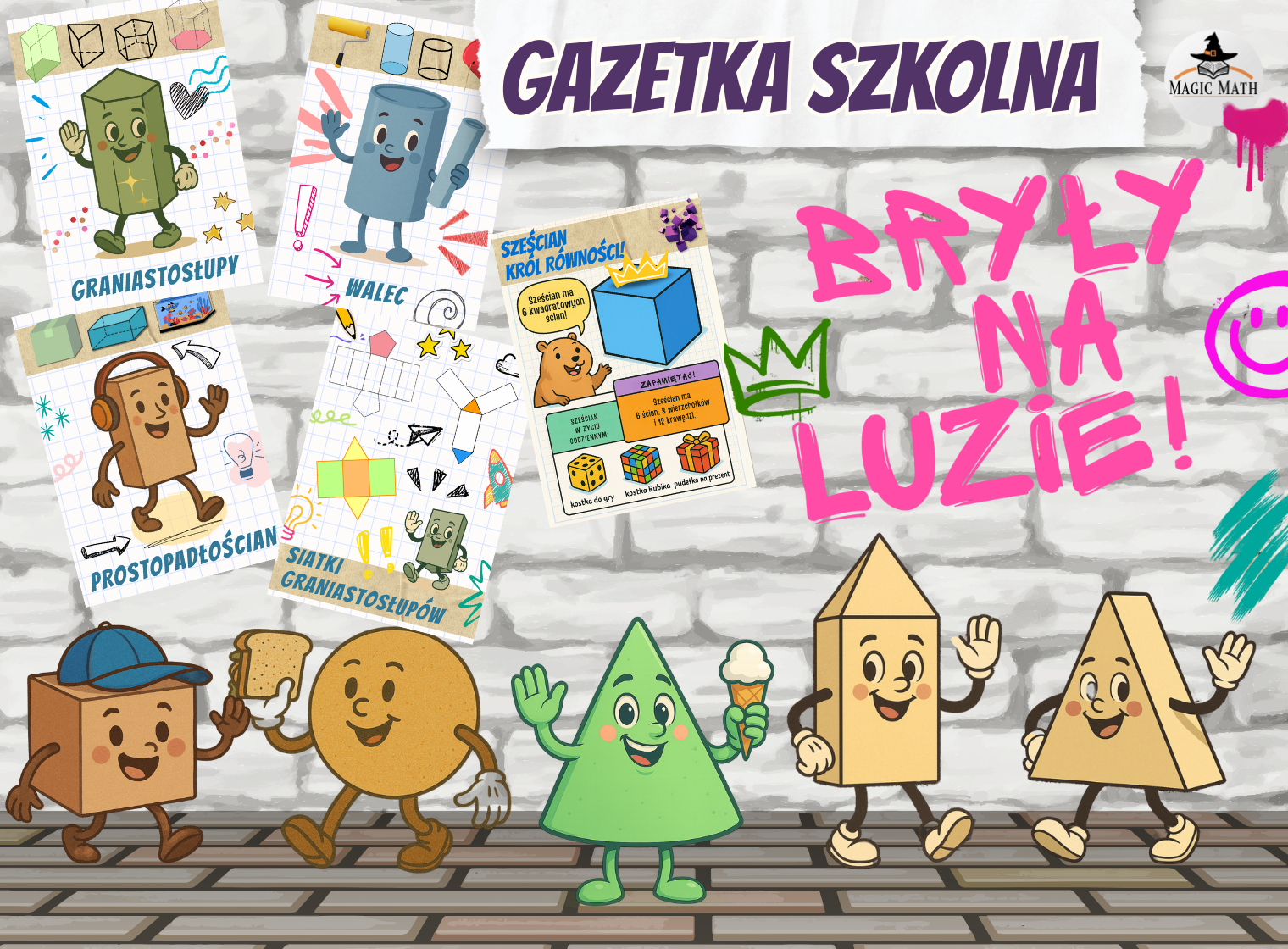 📏📚 Bryły na luzie! to gotowa gazetka ścienna, która w atrakcyjny sposób przybliża uczniom wygląd i właściwości brył przestrzennych. Kolorowe ilustracje, czytelne opisy i odniesienia do codziennego życia sprawiają, że matematyka staje się prostsza i bardziej zrozumiała.