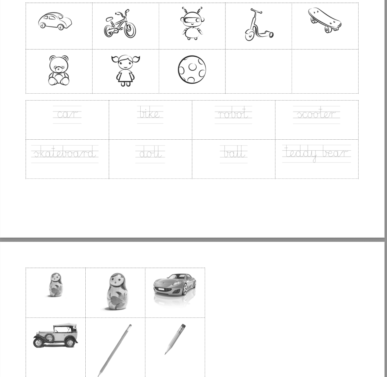 Wkleja je do zeszytu, dopasowując odpowiedni obrazek do angielskiego słowa.