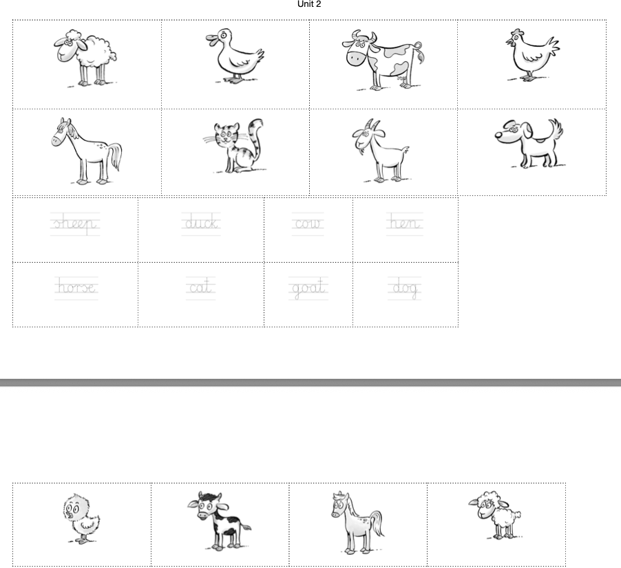 Wkleja je do zeszytu, dopasowując odpowiedni obrazek do angielskiego słowa.