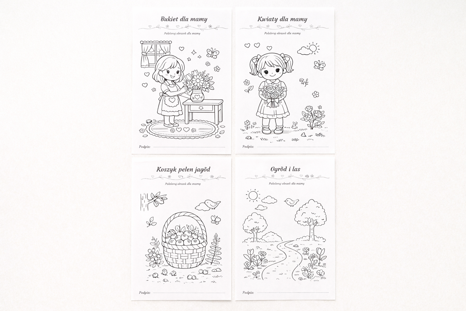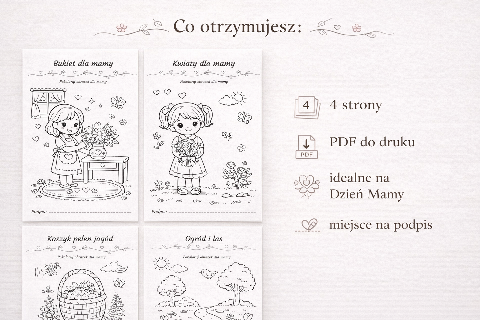 Kolorowanki dla mamy – uroczy zestaw 4 kart do druku PDF | Dzień Mamy | Laurka i kreatywna zabawa 💖🌸🖍️