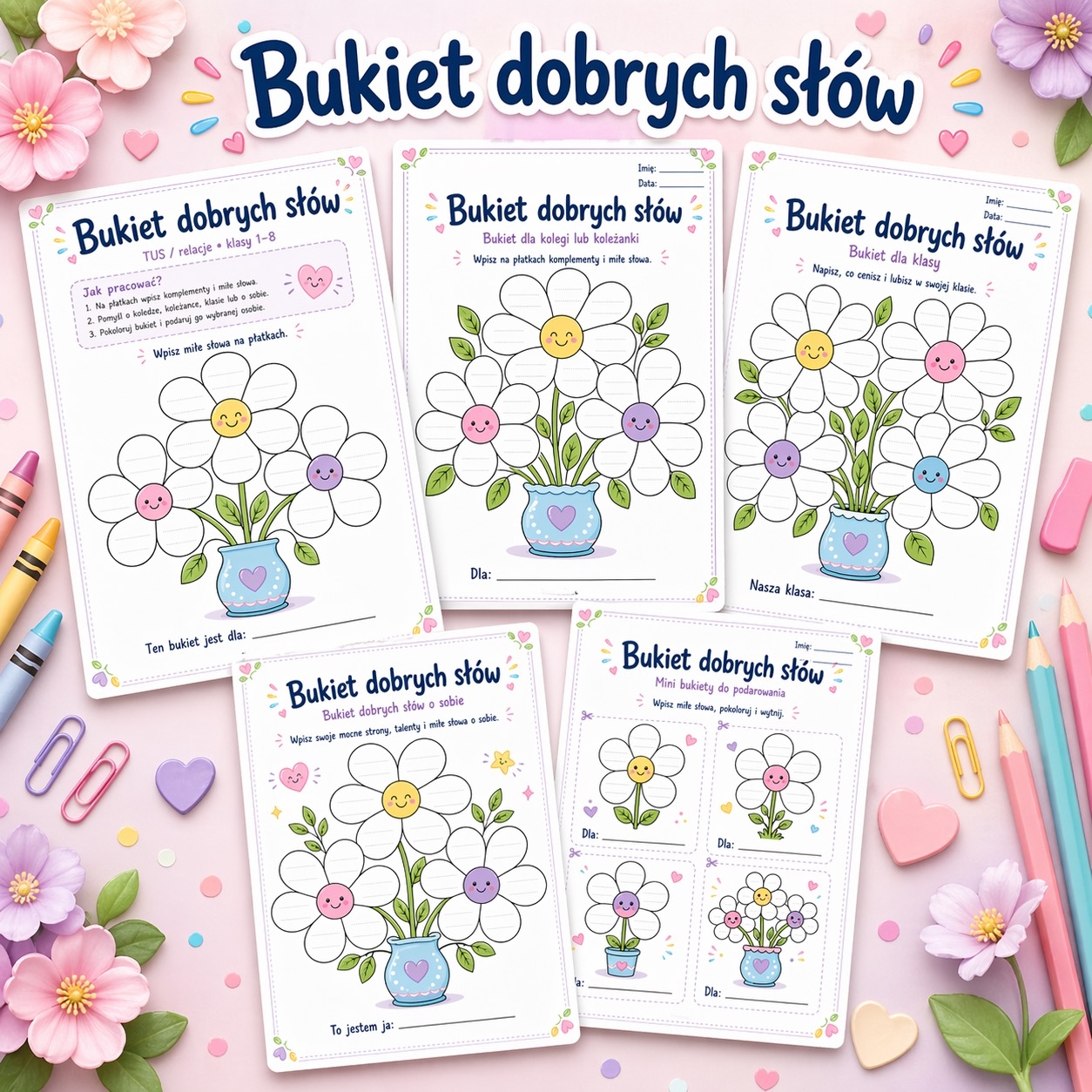 #BukietDobrychSłów #TUS #Relacje #UmiejętnościSpołeczne #Komplementy #Życzliwość #Empatia #IntegracjaKlasy #GodzinaWychowawcza #MateriałyEdukacyjne #KartyPracy #Klasy1_8 #Nauczyciel #Pedagog #PsychologSzkolny #EdukacjaWczesnoszkolna #Szkoła #PozytywnaKlasa