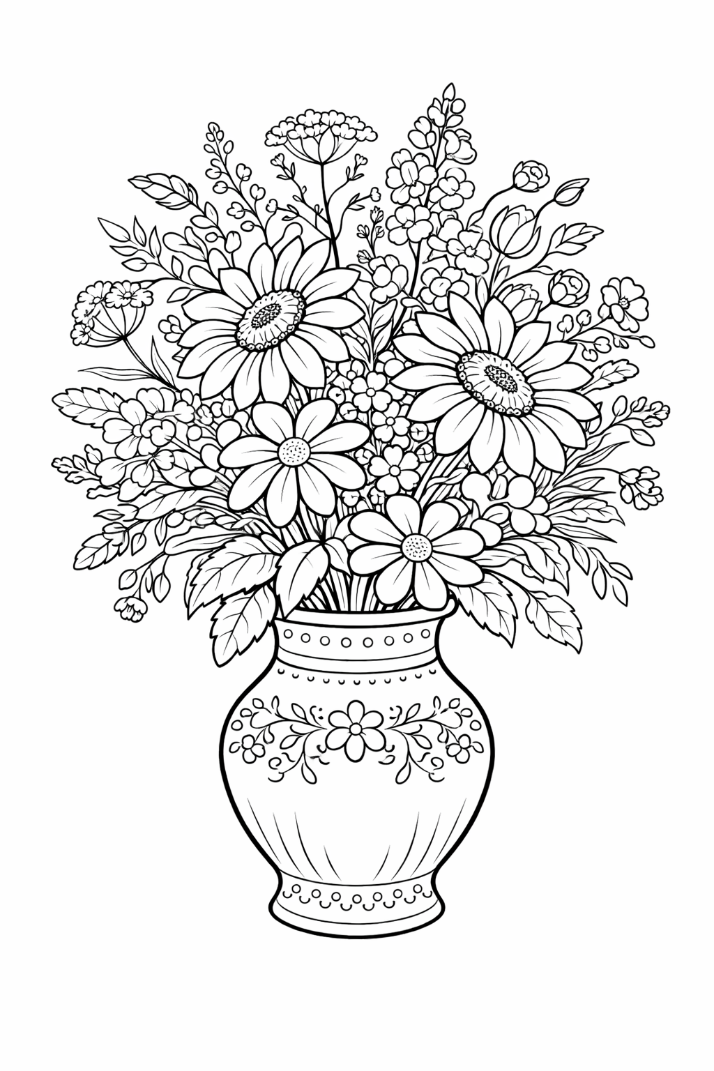 Bukiety kwiatów w wazonach - kolorowanki (6 stron) PDF do druku